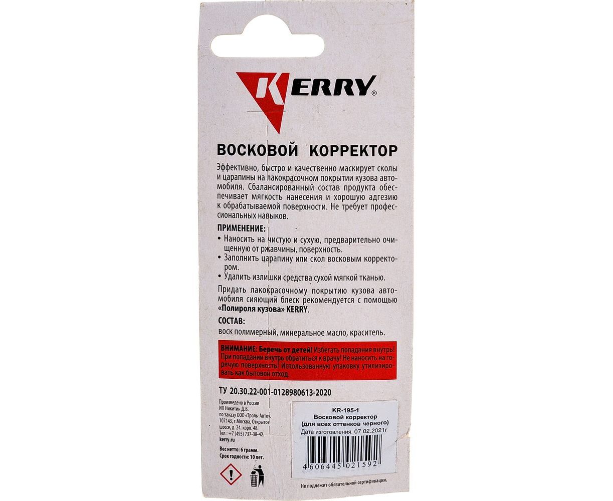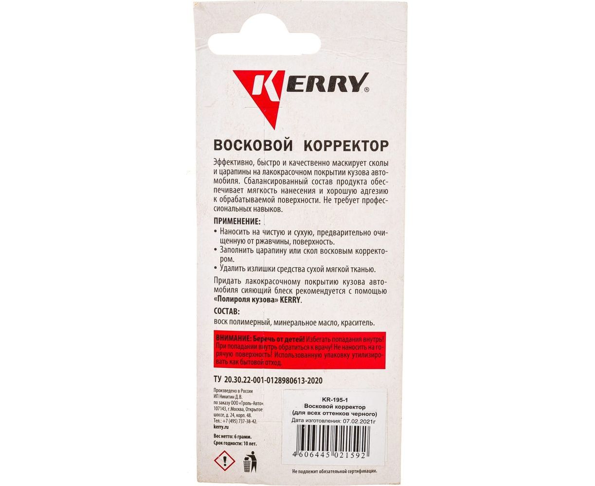 Восковый корректор для всех оттенков черного KERRY 6 гр. 11604714 эффективно, быстро и качественно маскирует сколы и царапины на лакокрасочном покрытии кузова автомобиля. Сбалансированный состав продукта обеспечивает мягкость нанесения и хорошую адгезию к обрабатываемой поверхности. Не требует профессиональных навыков.