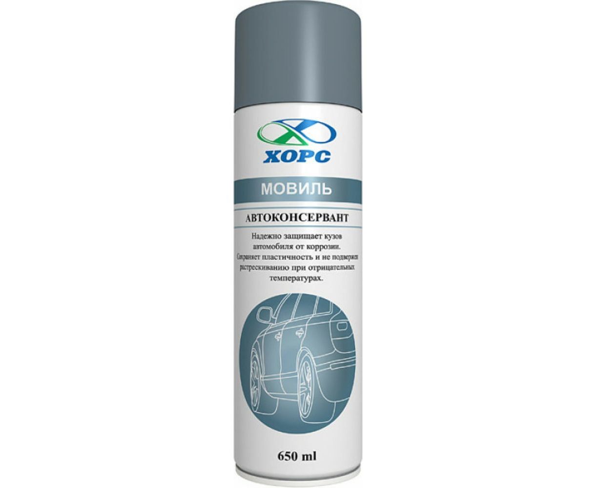 Аэрозоль ХОРС Мовиль, 650 мл PR1025 обеспечит эффективную и надежную защиту кузова от коррозии. Зарекомендовал себя как автоконсервант порогов автомобилей. Защищает от коррозии скрытые полости, днище. Изолирует поверхность обработанного металла от воздействия на нее воздуха и влаги.