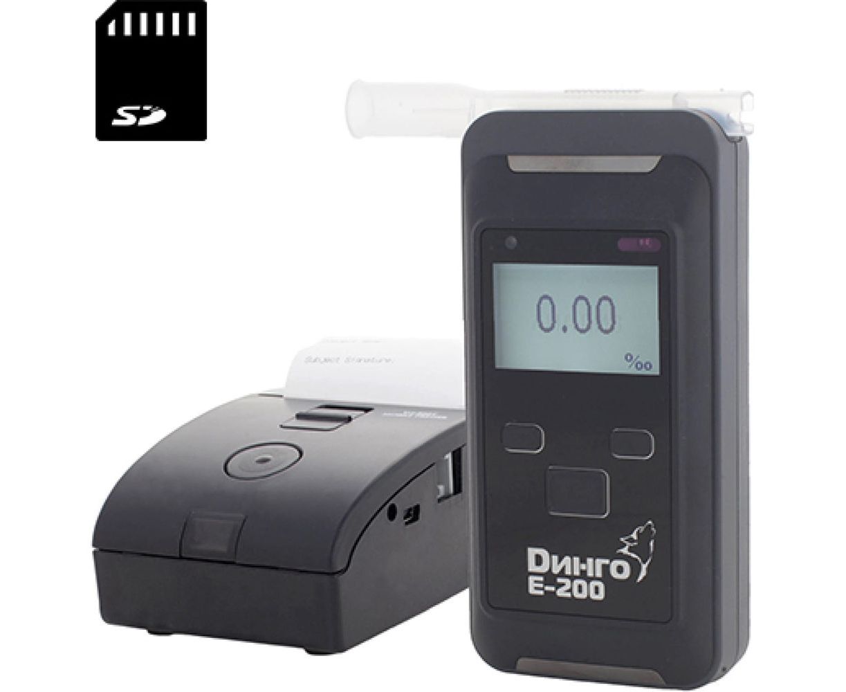 Алкотестер Динго спринтером и слотом для SD карты Е-200В - профессиональный анализатор, предназначен для быстрого и точного измерения массовой концентрации паров этанола в выдыхаемом воздухе.
