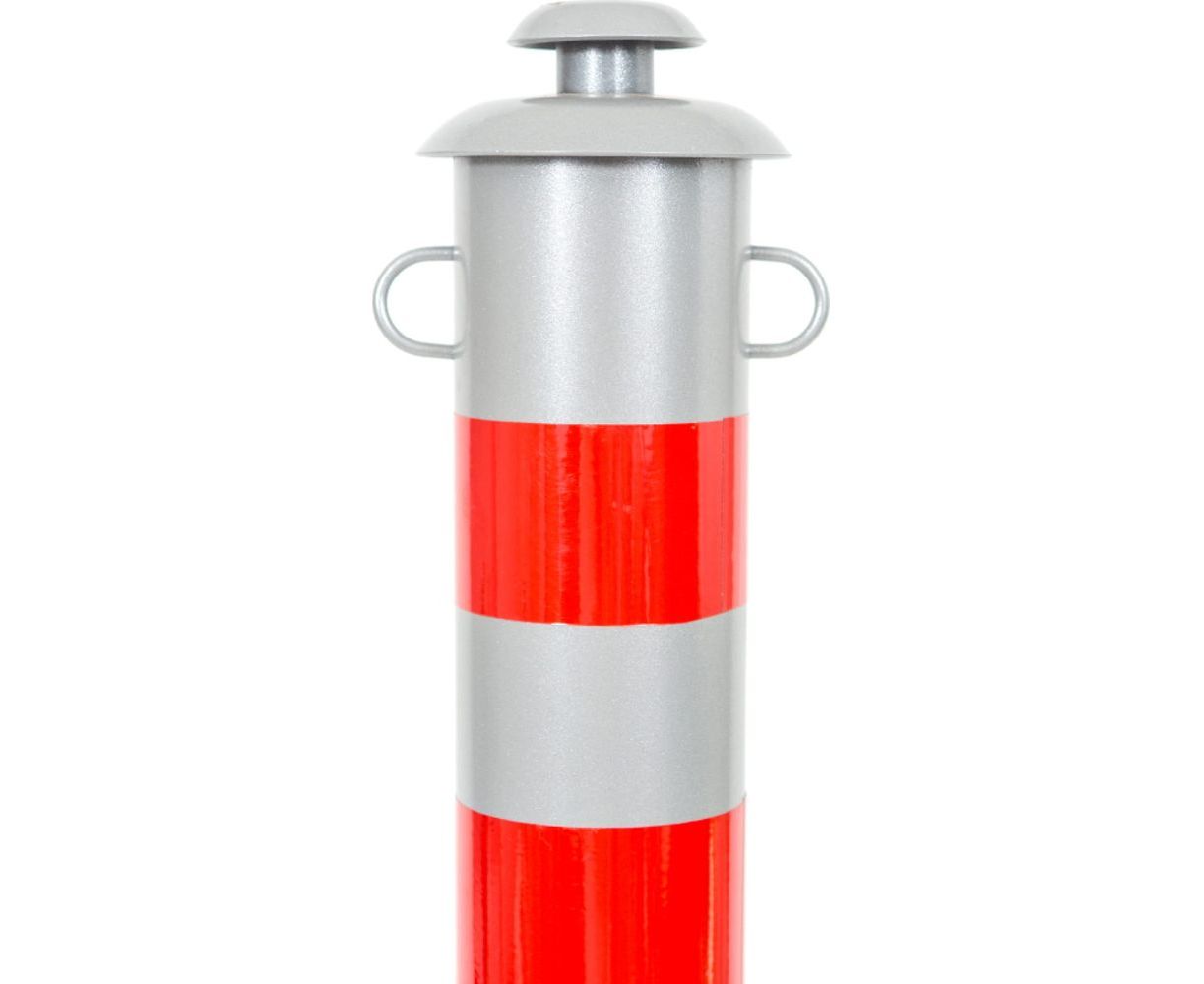Столбик парковочный изготовлен из стальной трубы, изделие оснащено двумя светоотражающими наклейками. Покрытие данного изделия – порошковая краска. Цвет и структура поверхности в серийном производстве – серебристый глянец + 2 красные светоотражающие полоски.