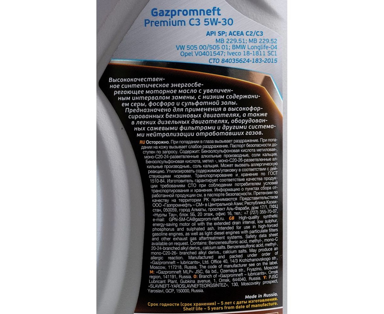 Масло Premium СЗ 5w30 1л Gazpromneft 253142229