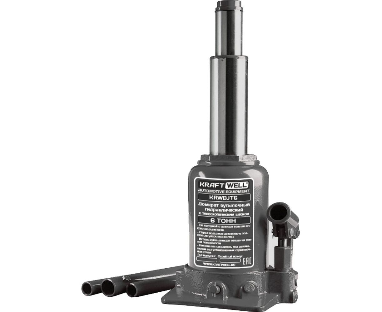 Бутылочный домкрат KraftWell г/п 6000 кг, с телескопическим штоком KRWBJT6