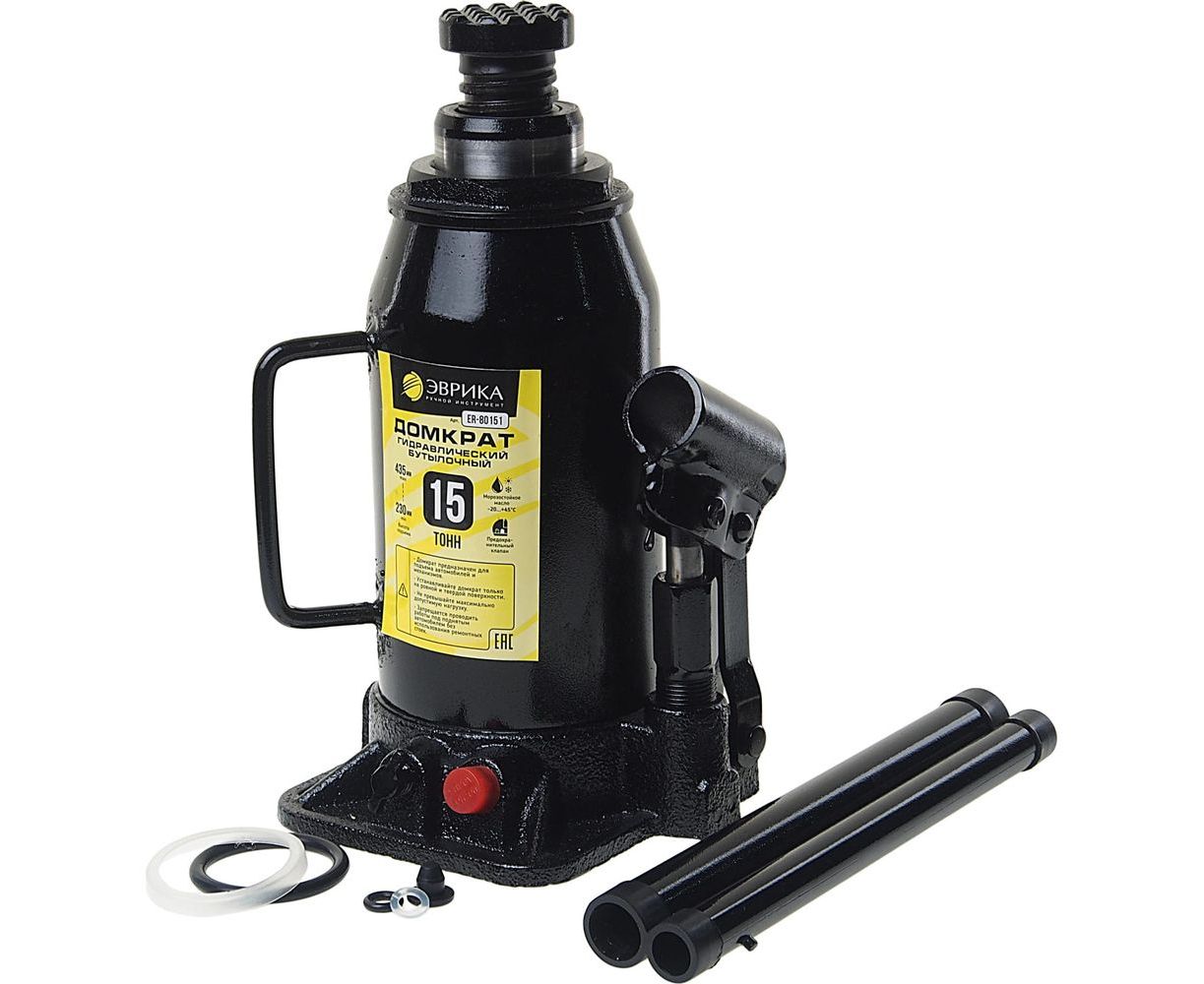 Гидравлический бутылочный домкрат ЭВРИКА с клапаном, 15 т, ремкомплект ER-80151