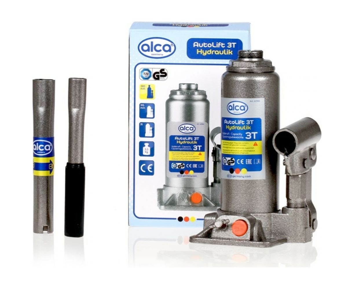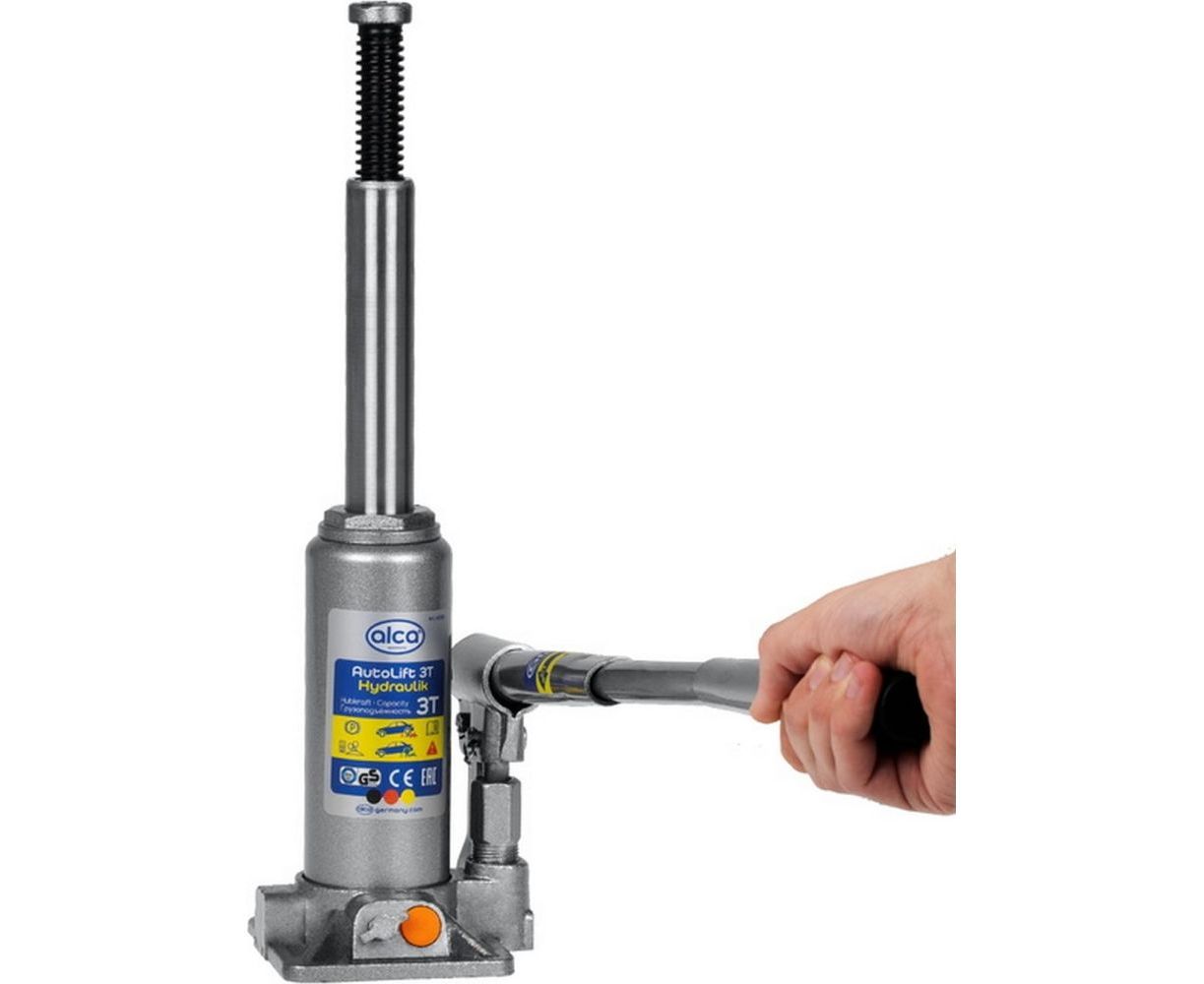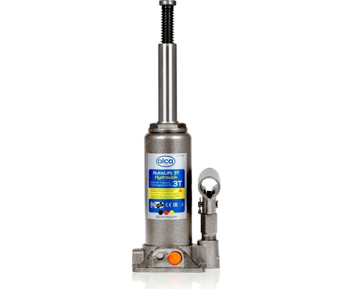 Гидравлический домкрат Alca 3т 431100 используют в автосервисах и ремонтных мастерских для поднятия и удержания различных грузов массой до 3 тонн. С помощью рукоятки-рычага обеспечивается плавный подъем и опускание.
