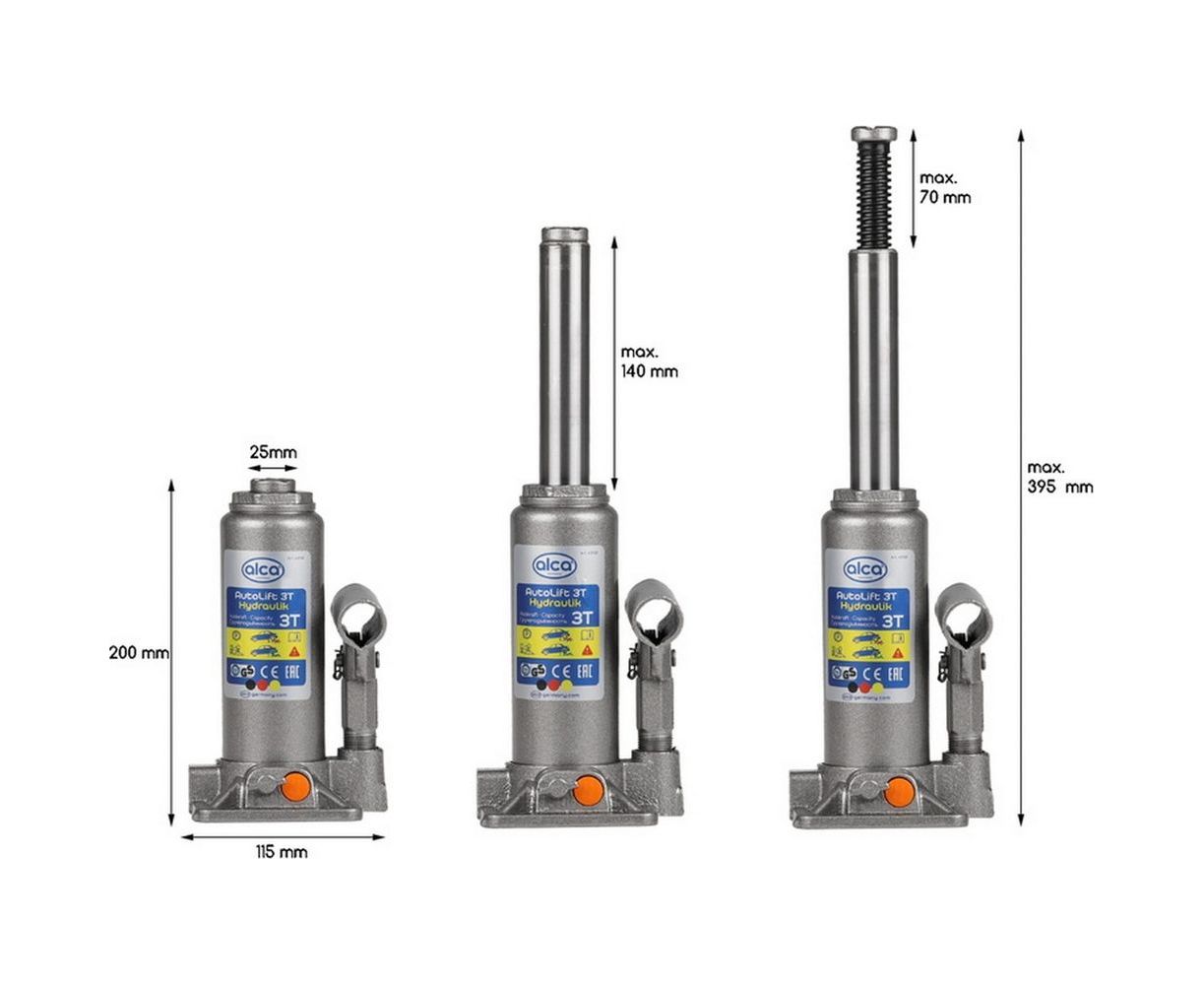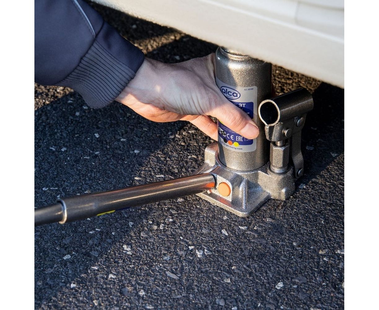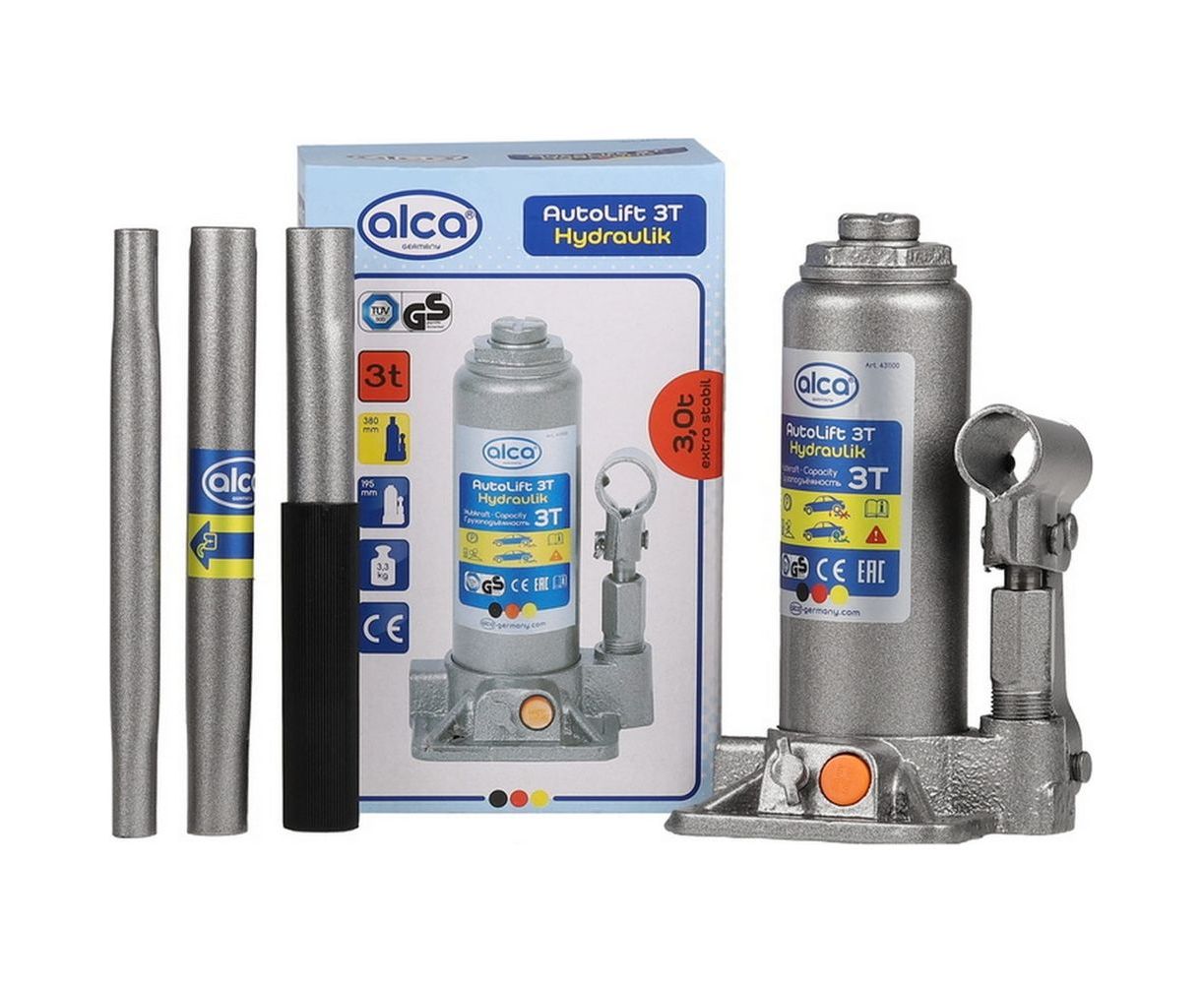 Гидравлический домкрат Alca 3т 431100 используют в автосервисах и ремонтных мастерских для поднятия и удержания различных грузов массой до 3 тонн. С помощью рукоятки-рычага обеспечивается плавный подъем и опускание.