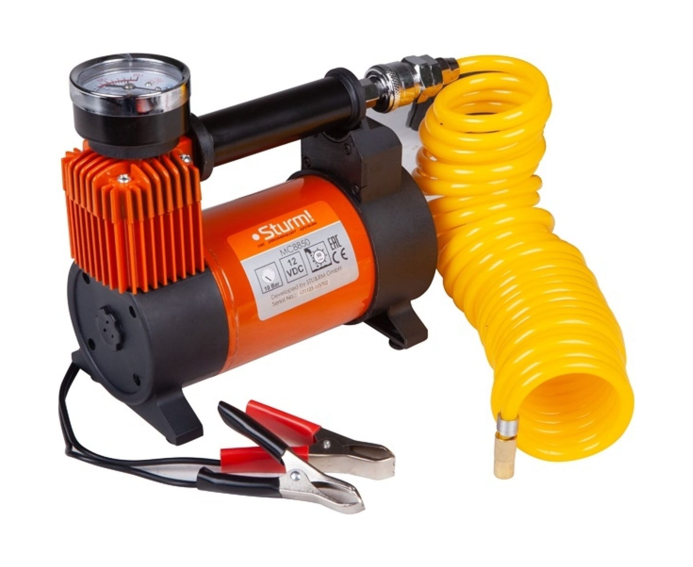 Автомобильный компрессор Sturm MC8850 оснащается аналоговым манометром для контроля давления в системе. Подключение воздушных шлангов осуществляется через разъем типа "рапид". Небольшие размеры устройства обеспечивают простоту хранения и перевозки. Изделие комплектуется клеммами для подключения к аккумулятору. Конструкция компрессора включает в себя удобную рукоятку для переноски, что позволяет максимально эффективно использовать устройство в дороге или в быту.