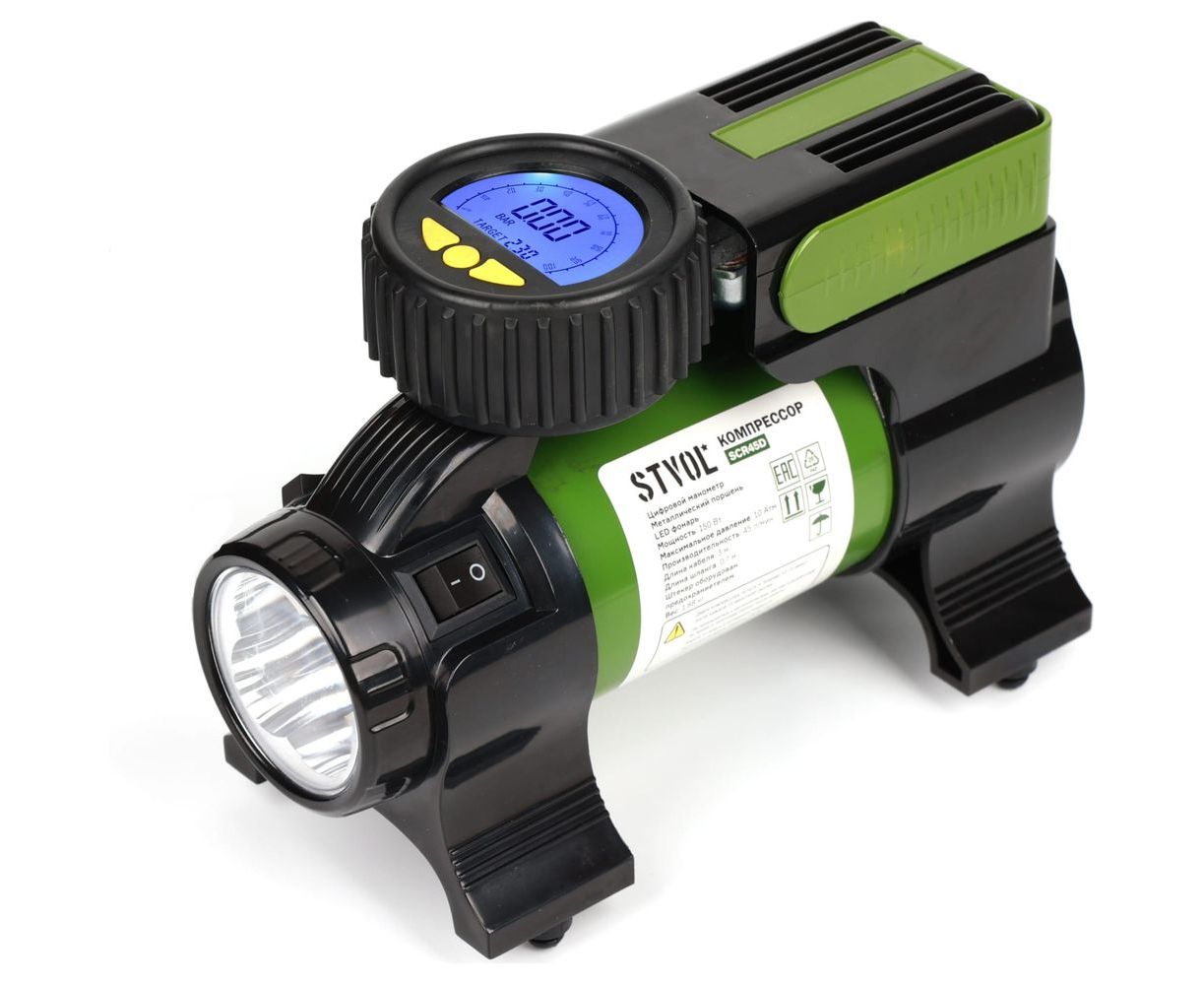 Автомобильный компрессор STVOL 45 л/мин, 14А, электронный манометр, фонарь SCR45D