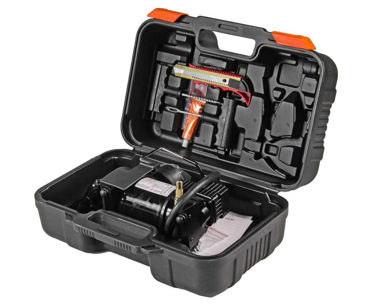Компрессор AIRLINE TORNADO S с комплектом инструмента, в кейсе, ремкомплект для бескамерных шин, нож CA-020-01