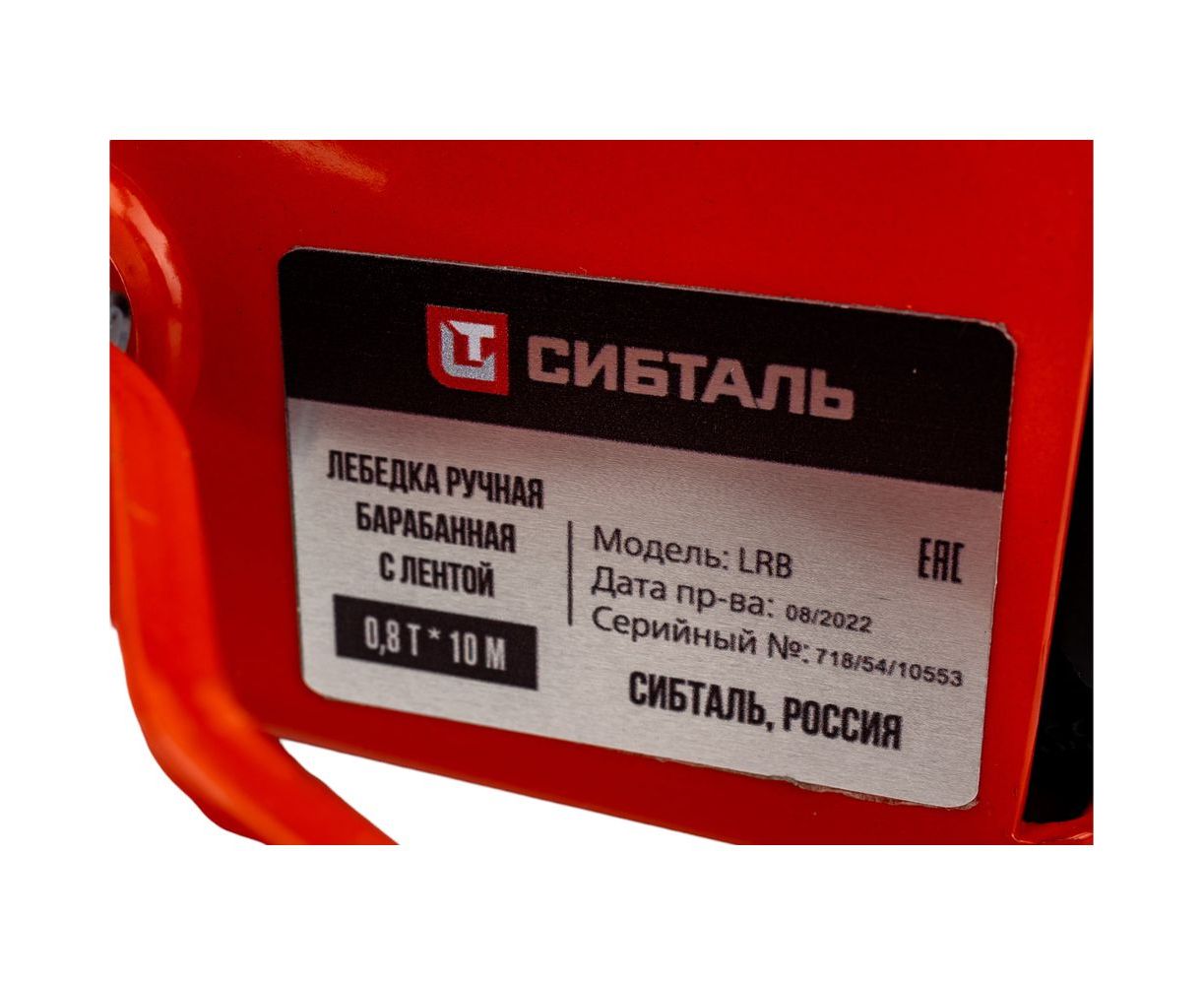 Ручная барабанная лебедка Сибталь модель LRB, 800 кг, лента 10 м 070 0018 0800