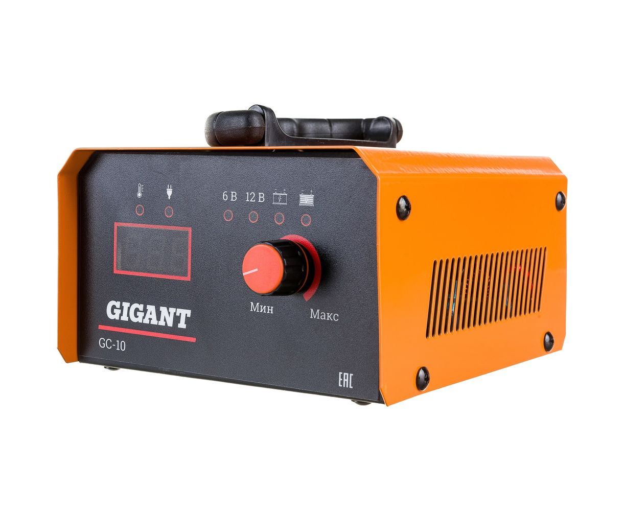 Зарядное устройство Gigant GC-10 подходит для заряда аккумуляторов. Лаконичная панель управления имеет простую символику и не вызовет трудностей у пользователя. Корпус модели оснащен многочисленными отверстиями, а сзади установлен вентилятор, что предотвращает, перегрев внутренних узлов. Качественное лакокрасочное покрытие препятствует образованию коррозии.