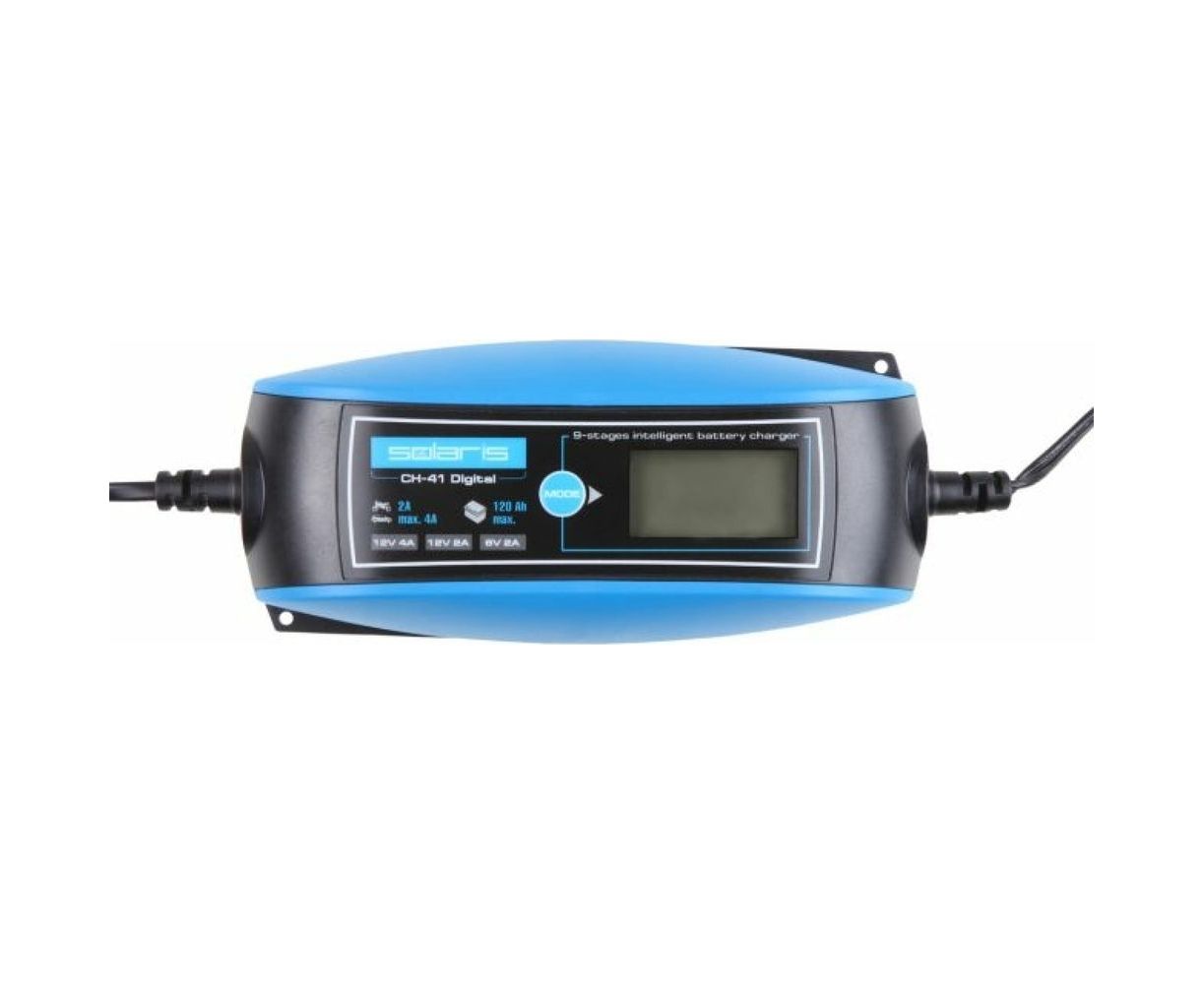 Зарядное устройство SOLARIS CH-41 Digital CH41D171 предназначено для зарядки аккумуляторов различных типов (WET, GEL, MF, EFB, AGM) автомобилей, грузовиков, мотоциклов, моторных лодок, садовых тракторов с бортовой сетью 6В или 12В.