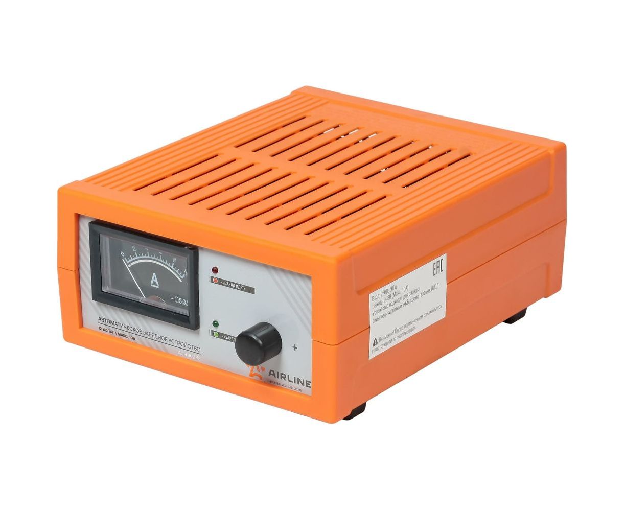 Зарядное устройство AIRLINE 0-10 А, 12 В, амперметр, ручная регулировка зарядного тока, импульсное ACH-AM-18 для свинцово-кислотных аккумуляторов с номинальным напряжением 12 В с возможностью регулировки зарядного тока. Обеспечивает заряд до напряжения 14.5 В. Позволяет заряжать аккумуляторные батареи ёмкостью от 1.2 до 150 Ач. Зарядка происходит в автоматическом режиме. После окончания зарядки устройство может поддерживать заряд АКБ длительное время.