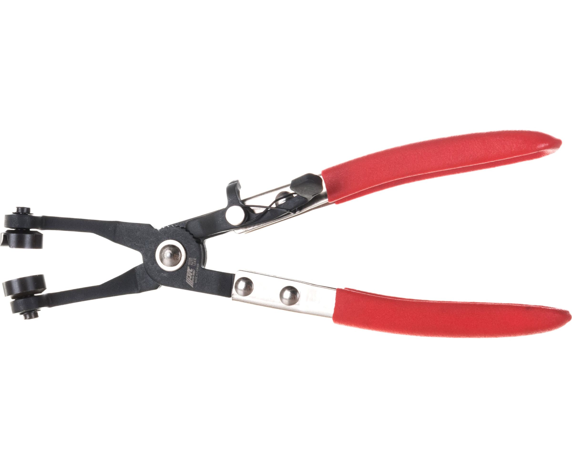 Изогнутый съемник JTC-1028A прост и удобен в обращении при выполнении работ по снятию хомутов и нижнего патрубка радиатора автомобиля. Захватные части изделия изогнуты под углом 45 градусов. Толщина рабочей части составляет 4 мм. Инструмент дополнительно оснащен фиксаторами положения.