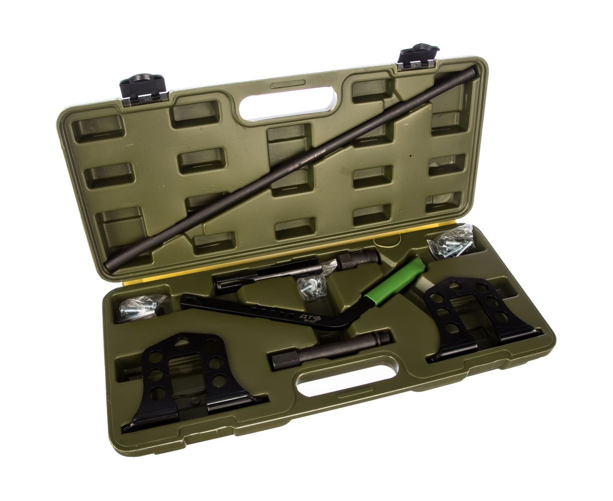 Рассухариватель универсальный Дело Техники 801207 используется для сжатия клапанных пружин. Набор можно использовать на снятой головке блока или непосредственно на двигателе. Комплект универсален и подходит для большинства двигателей с 8 и 16 клапанами. В комплекте поставляется два переходника для подачи воздуха. Инструмент изготовлен из стали 45 с твердостью 20-26 HRC.