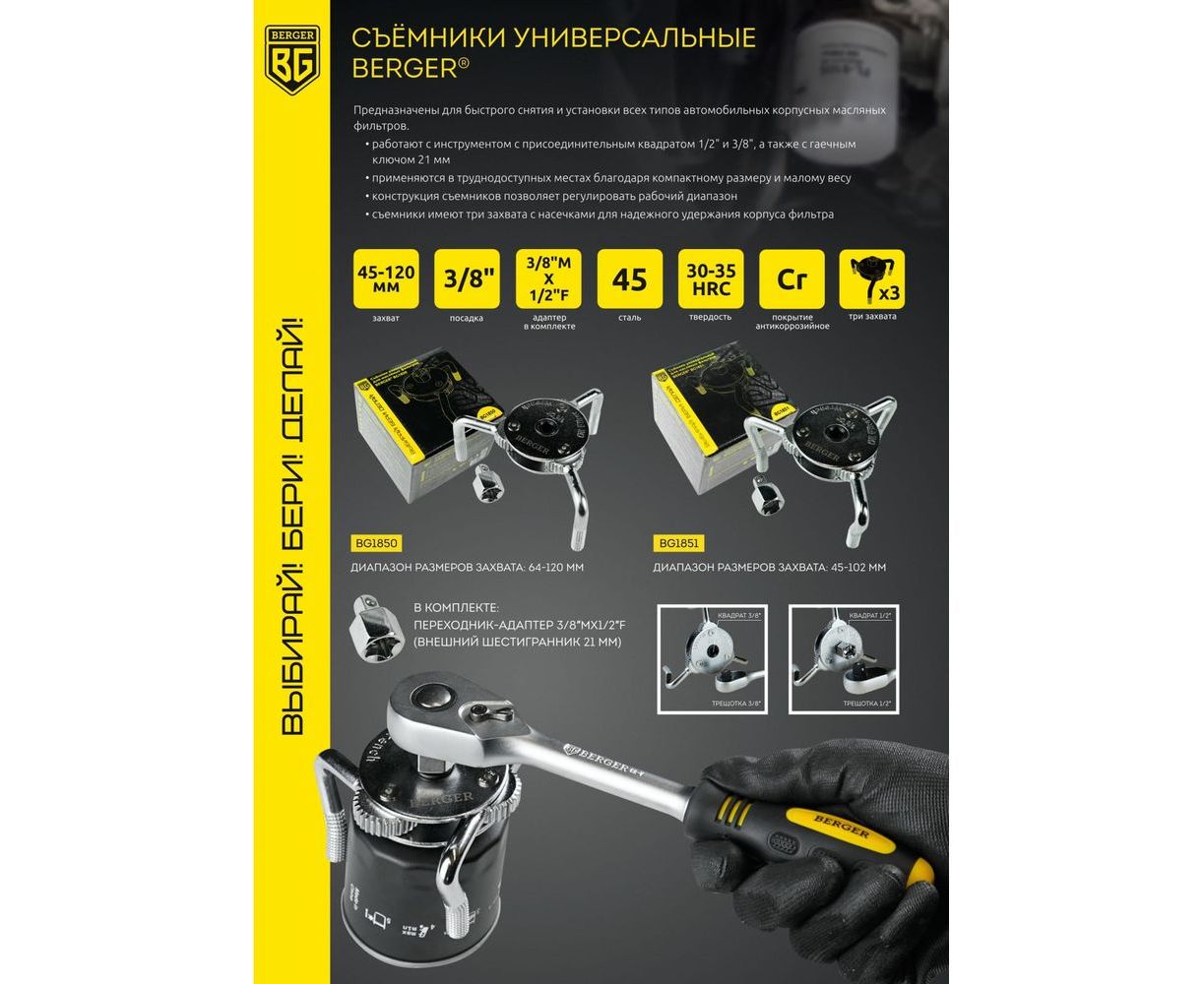 Крабовидный съемник масляных фильтров Berger BG захват 45-102 мм BG1851