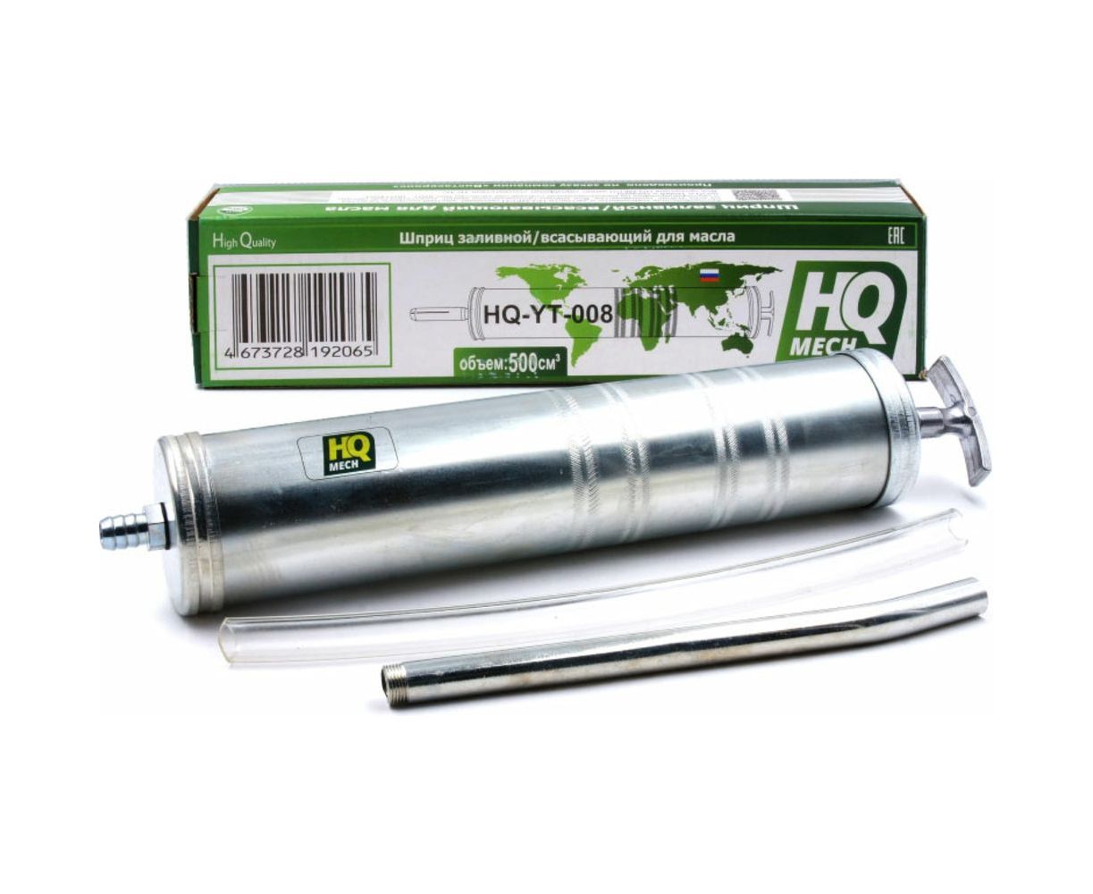 Шприц для жидкой смазки (масла) HQ-mech 500 мл, заливной/всасывающий, оцинкованное покрытие, 2 насадки УТ000002065