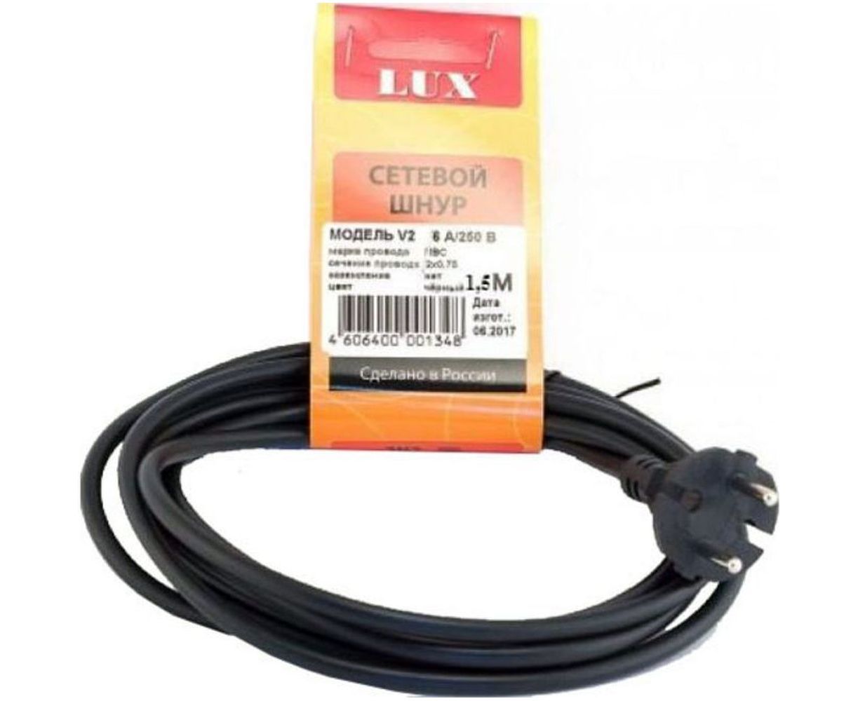 Сетевой шнур с вилкой Lux V2 ПВС 2x0.75 мм 1.5 м черный без заземления 4606400001331