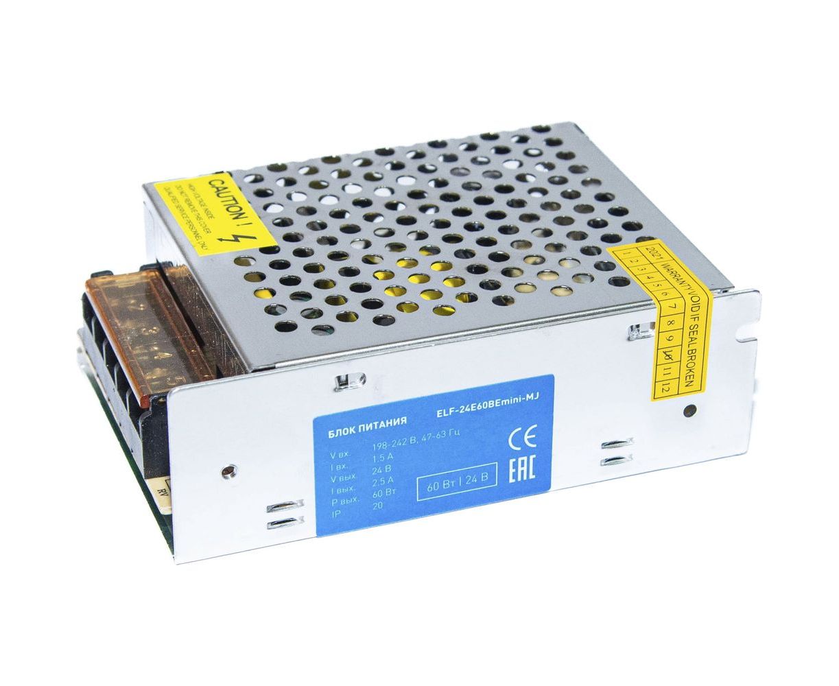 Блок питания ELF интерьерный, 24В, 60Вт, компактный металлический перфорированный корпус (MJ) ELF-24E60BEmini-MJ
