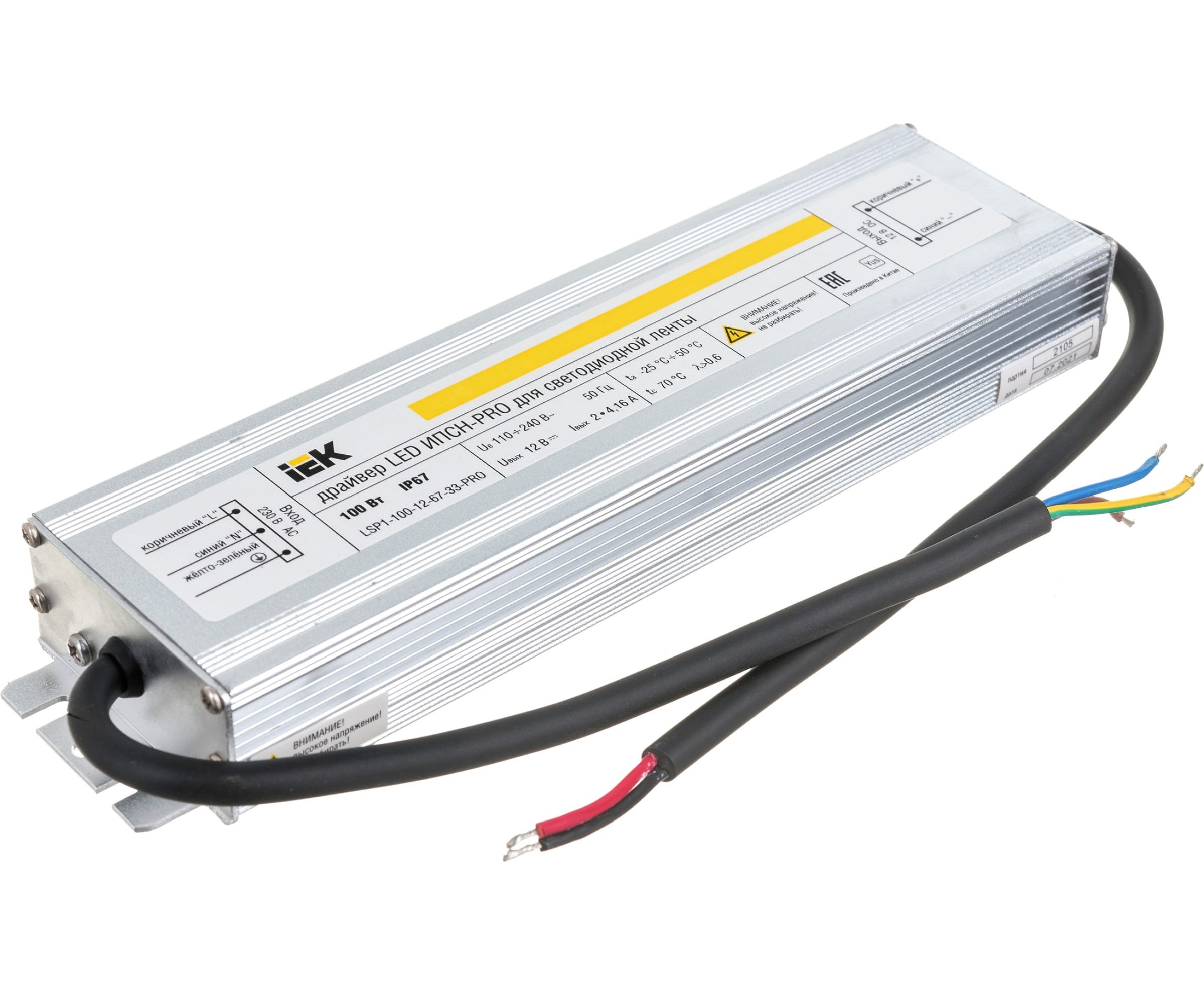 Драйвер IEK LED ИПСН-PRO, 100Вт, 12В блок-шнуры IP67 LSP1-100-12-67-33-PRO