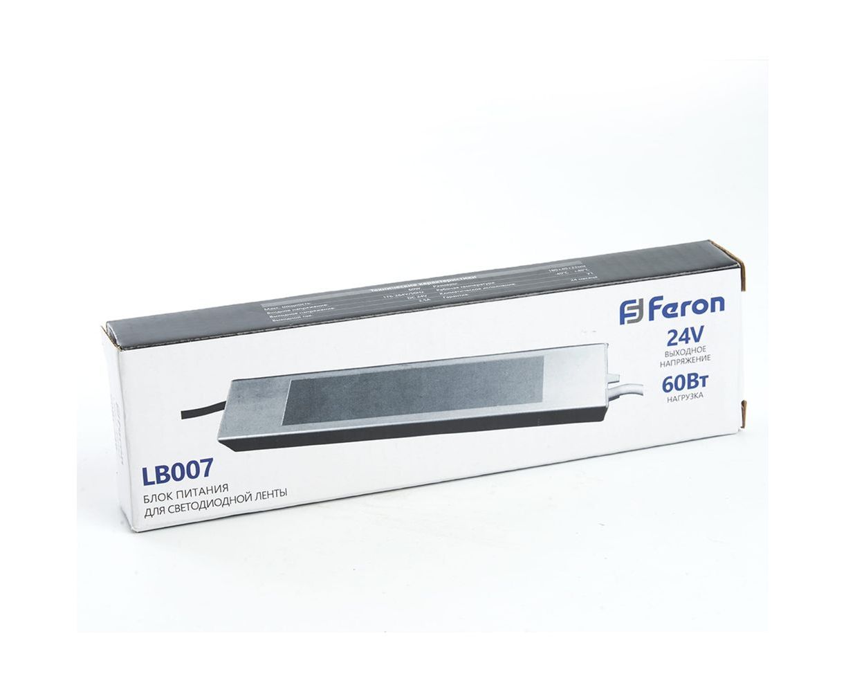 Электронный трансформатор для светодиодной ленты FERON 60W 24V (драйвер), LB007, 48057