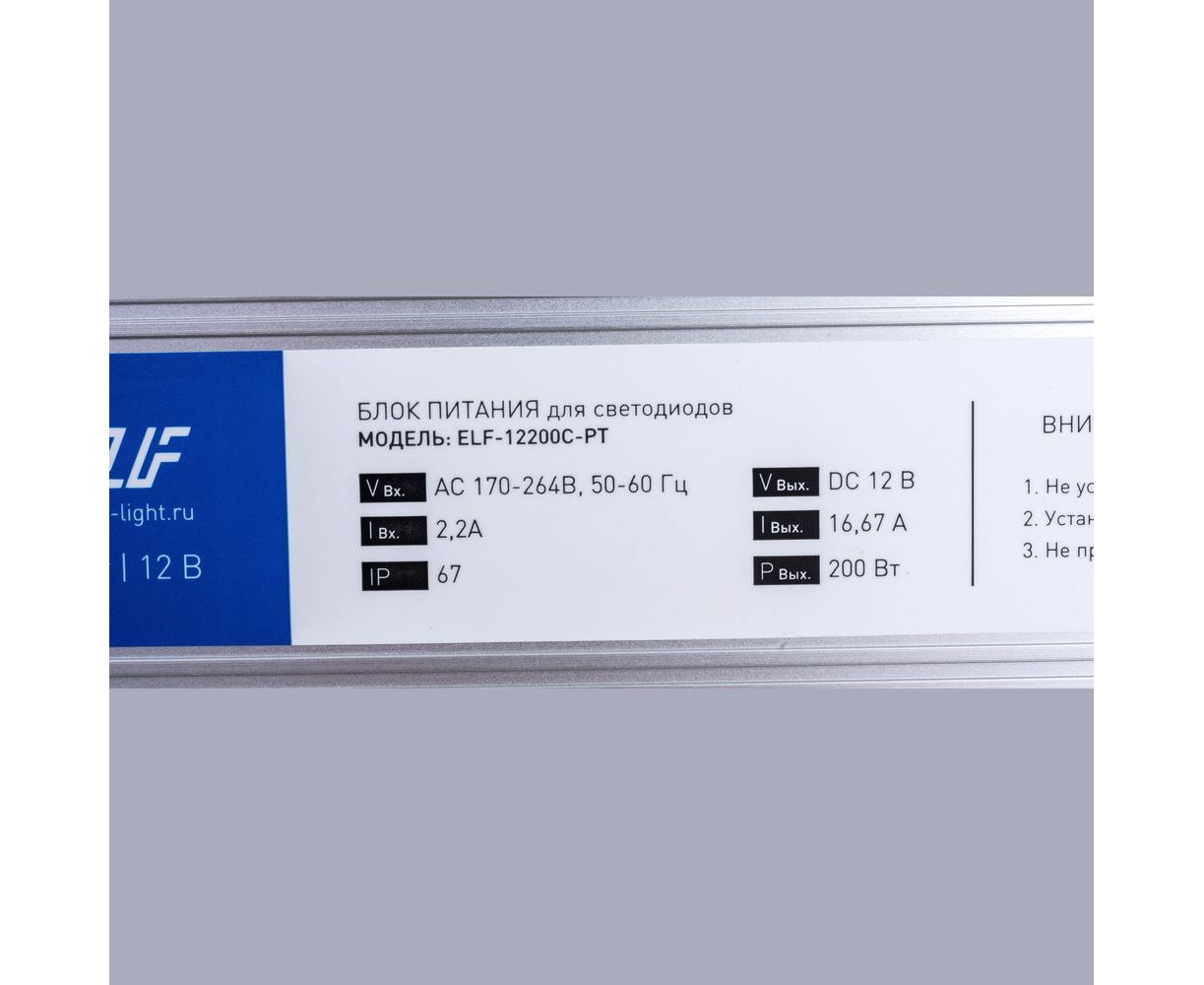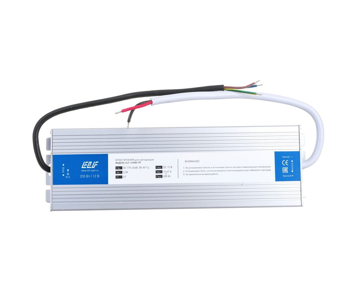 Герметичный компактный блок питания ELF 12В, 200Вт, металл, IP67 ELF-12200С-PT предназначен для обеспечения общего или раздельного питания светодиодного светотехнического оборудования постоянным током требуемого напряжения 12 В от сети переменного тока.