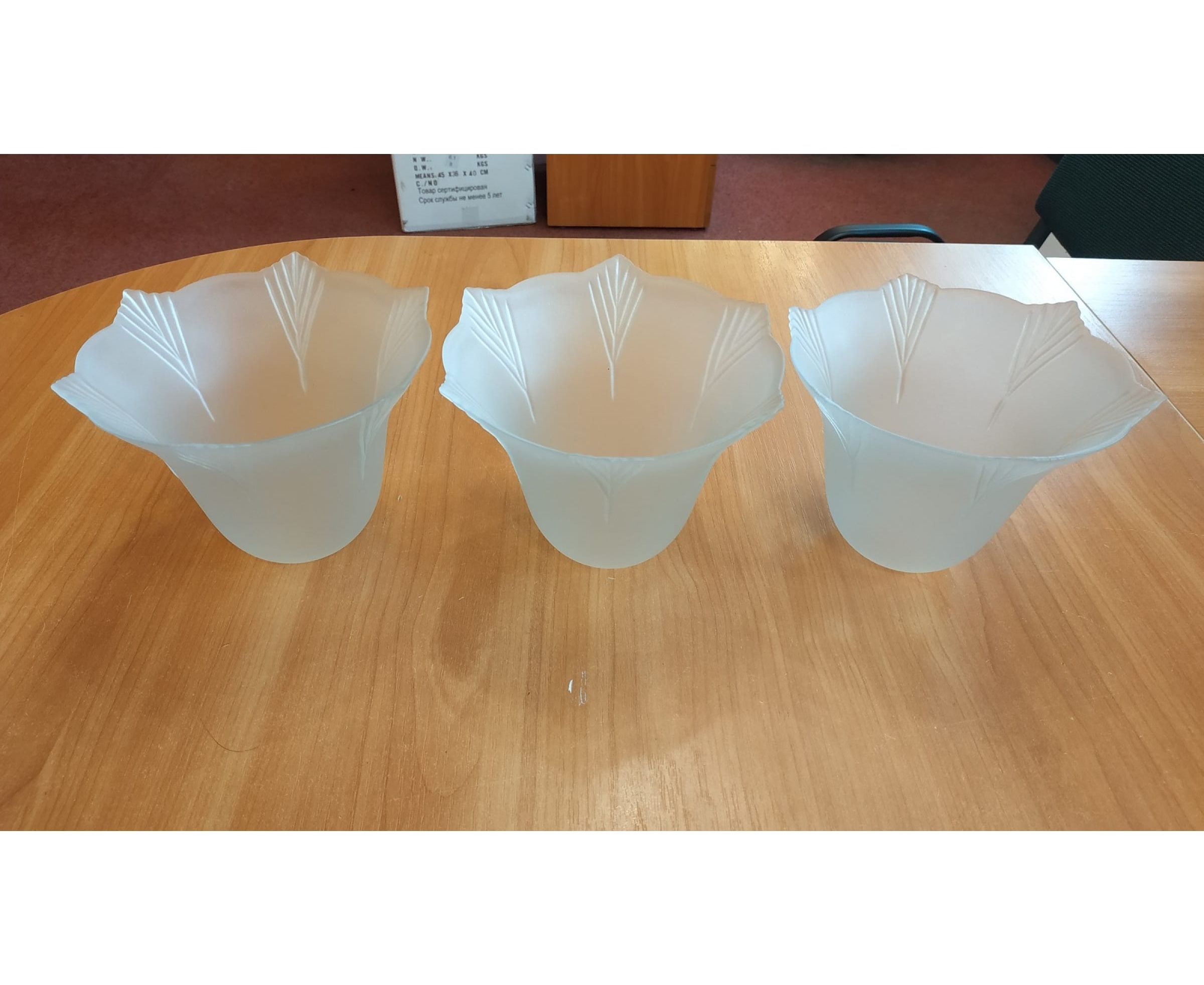 Комплект плафонов JUPITER LIGHTING Гусиные лапки 3 для люстр и светильников. Подходят для крепления на кольцо патрона Е27. Цвет полупрозрачный матовый. Размер плафона: высота 12 см, диаметр 16,5 см, диаметр посадочного отверстия 4,2 см.
