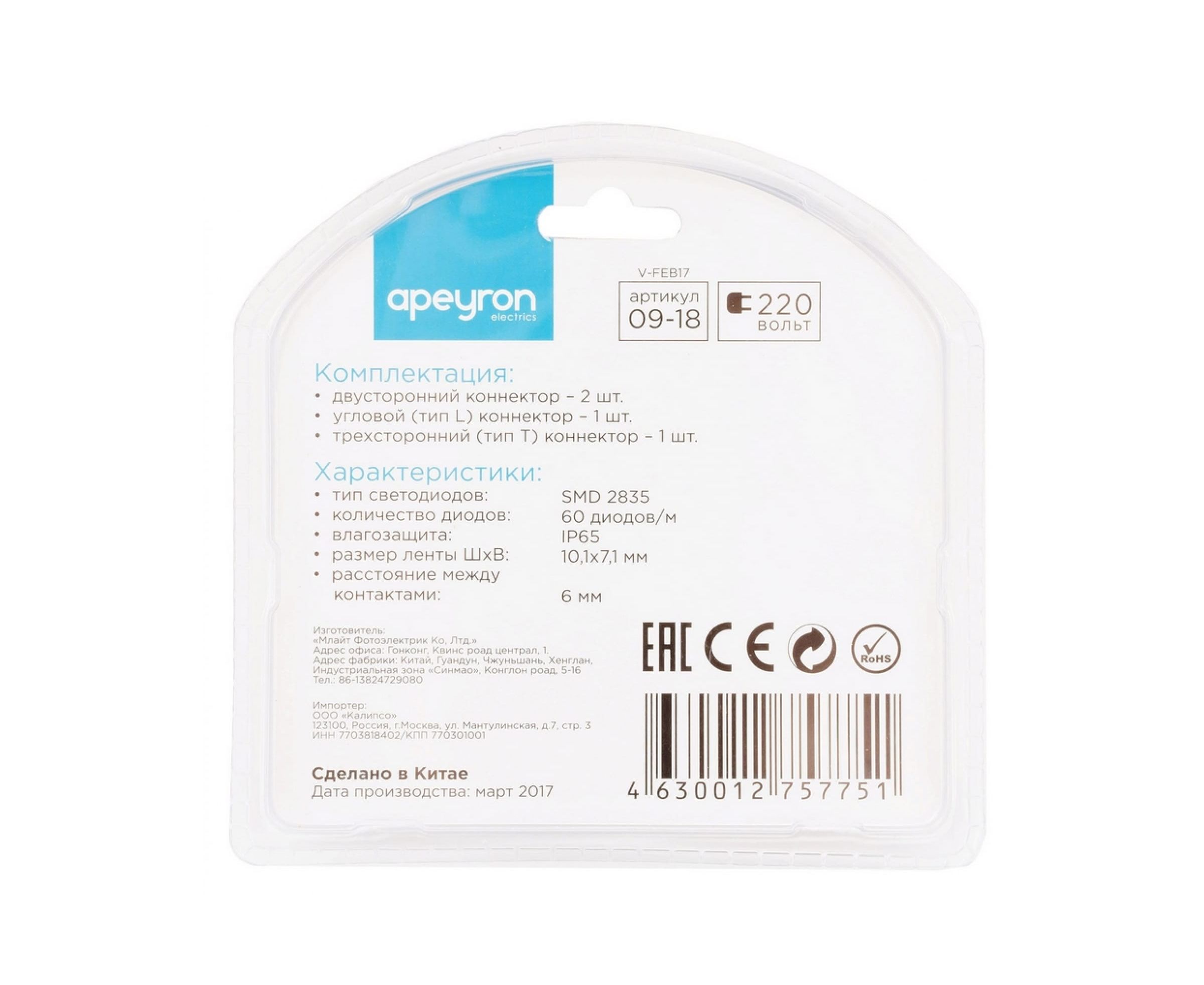Комплект коннекторов Apeyron прямой, L, Т и Х-образный для 220В 09-18