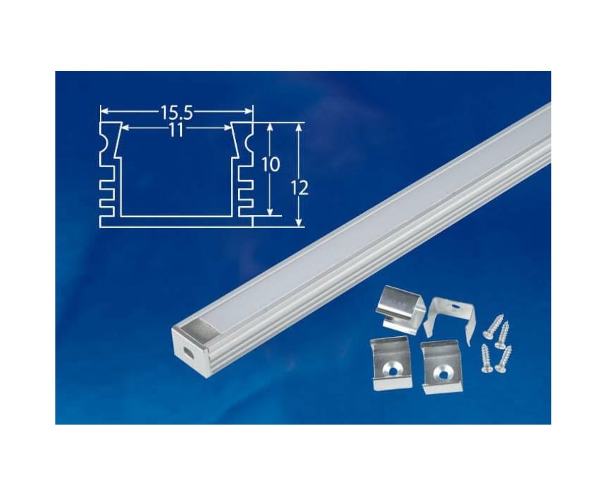 Накладной алюминиевый профиль Uniel с матовым рассеивателем, 200 см. 2 заглушки+4 крепежа в/к. UL-00005029