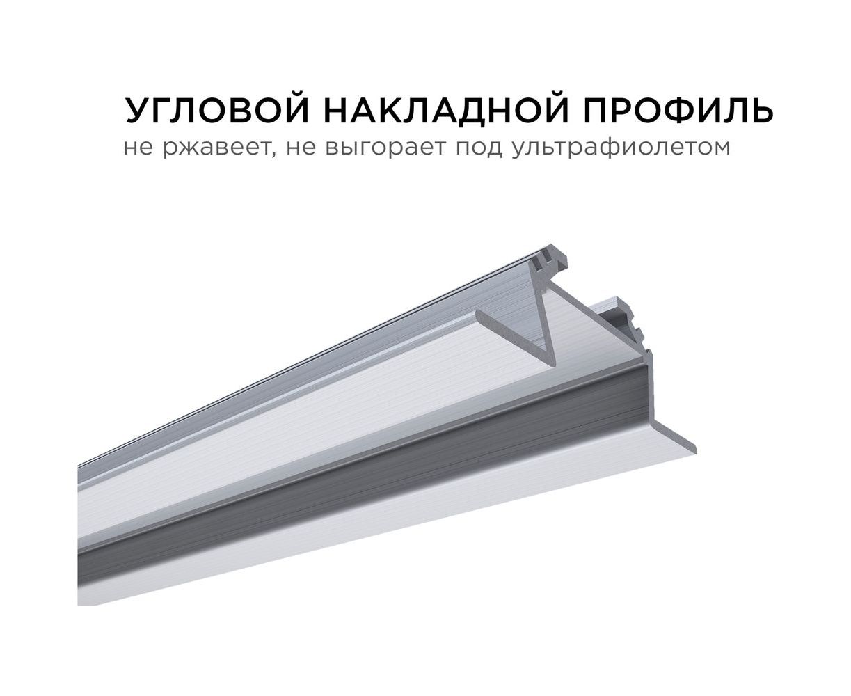 Накладной алюминиевый угловой профиль APEYRON для светодиодной ленты, 08-07-01