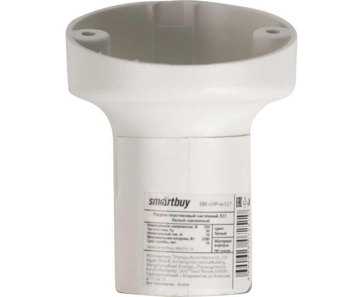 Настенный наклонный патрон Smartbuy пластиковый Е27, белый SBE-LHP-w-E27 применяется в быту и строительстве для монтажа осветительных приборов и присоединения энергосберегающих ламп и ламп накаливания электрической сети.