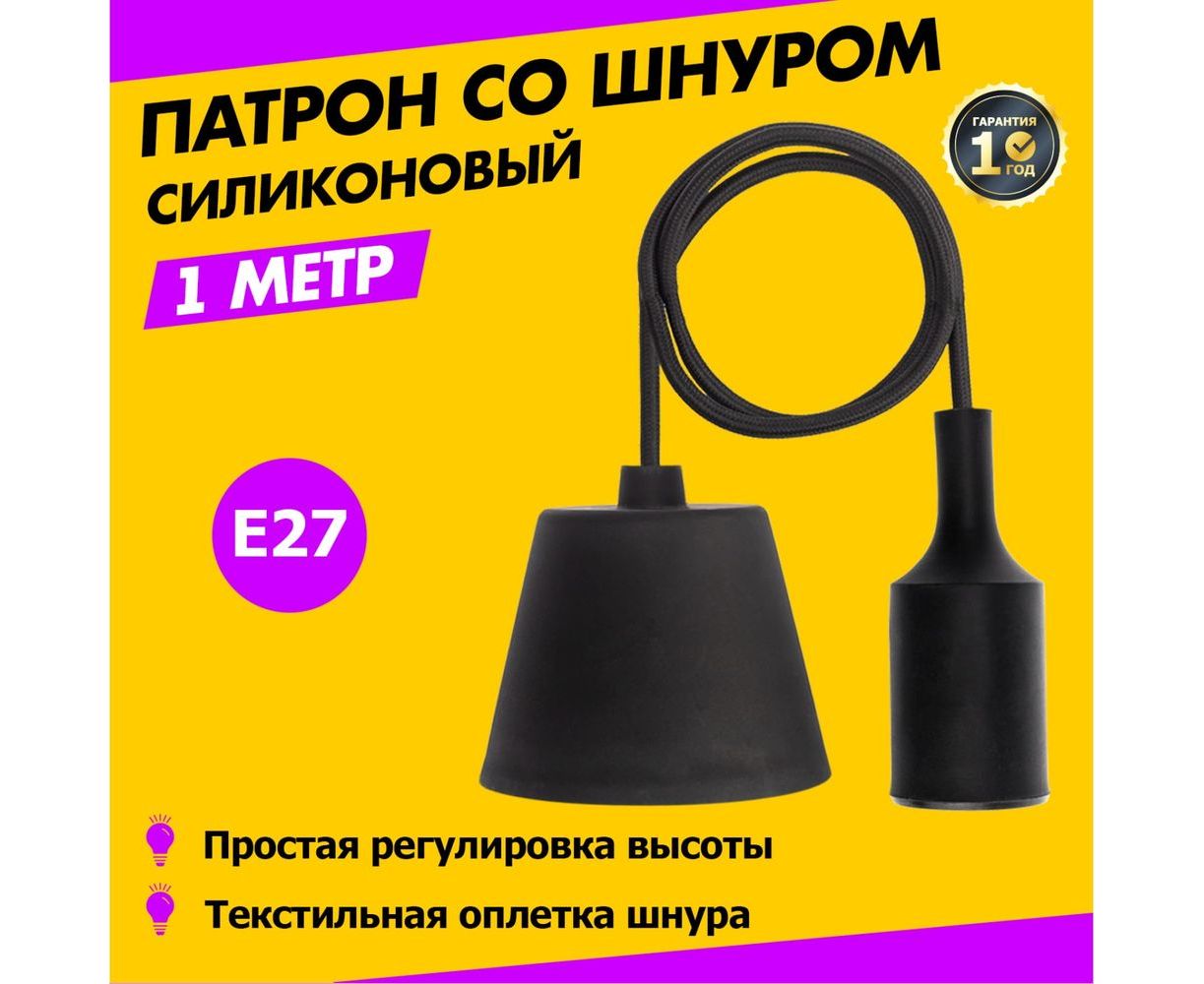 Патрон REXANT E27 силиконовый со шнуром 1 м черный 11-8890