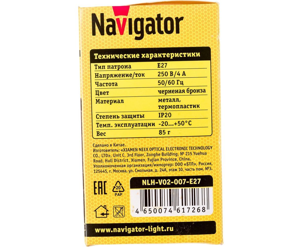 Подвесной электрический патрон Navigator NLH-V02-007-E27, металлический, черненая бронза 61726