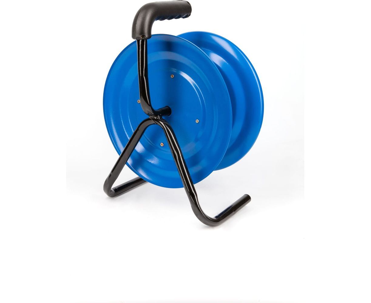 На корпусе катушки располагается устойчивая подставка и специальная рукоятка для удобства переноски удлинителя. Катушка без удлинителя, диаметр 30 см, 4 розетки с заземлением, металлическая катушка без провода, металлическая тренога, IP-44 Длина провода с сечением 3х2,5 составит ±50 м.