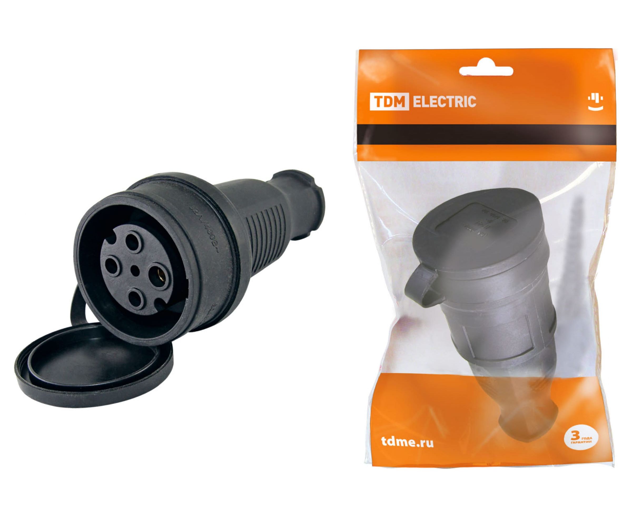 Разъем TDM с заглушкой каучук 3Р+РЕ 32А 380В IP44 SQ0612-0007