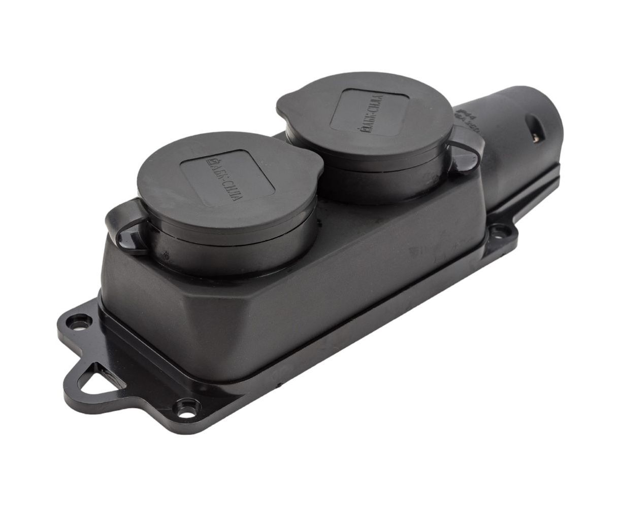 Двухместный розеточный блок АБК-СИЛА с крышками каучук 16А 220В IP- 44 2903031