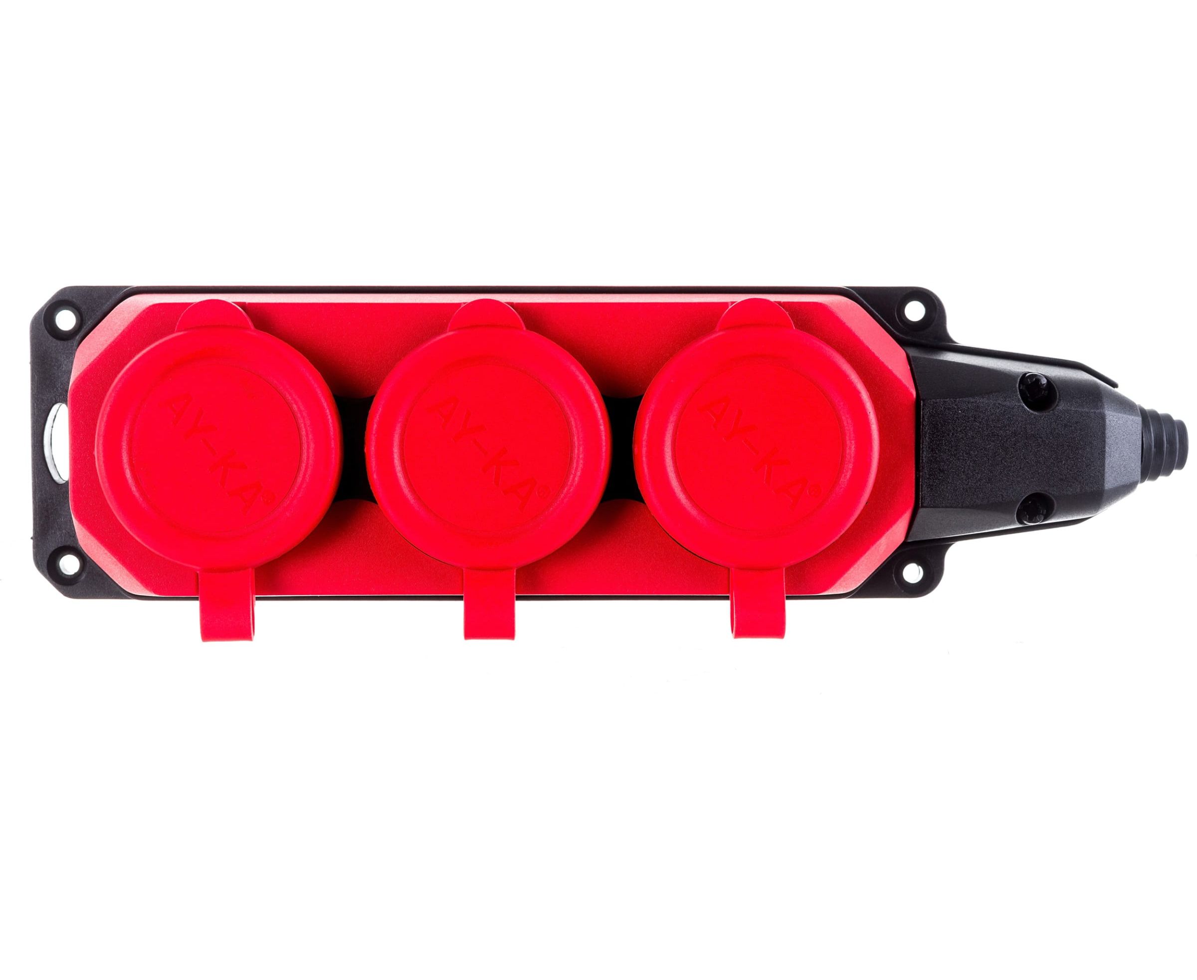 Колодка AY-KA ОУ 3-ая каучук с/з 16A IP44 красная 5530001