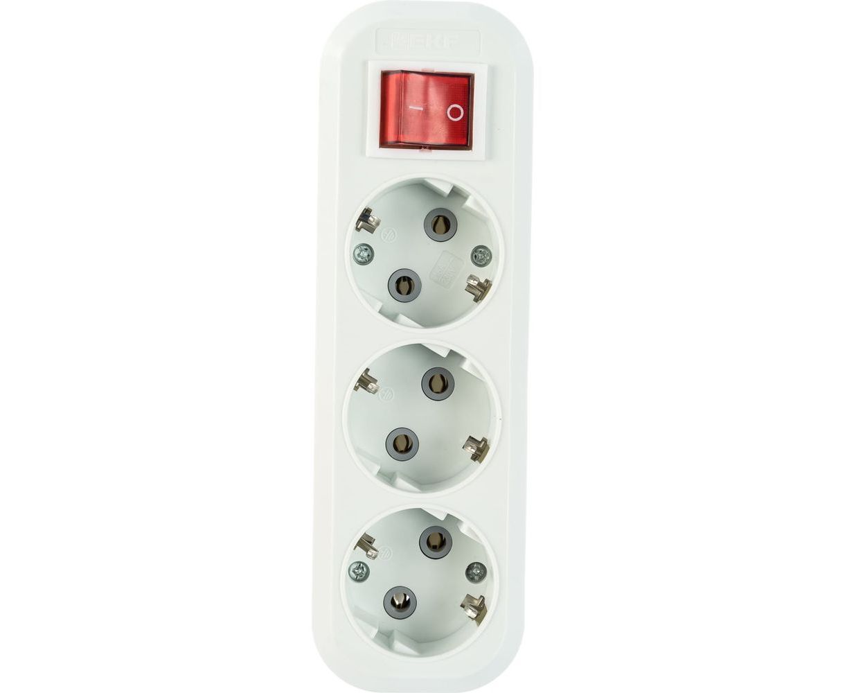 Колодка EKF 3 гнезда с заземлением с выключателем 16А Эксперт AKB16-3i