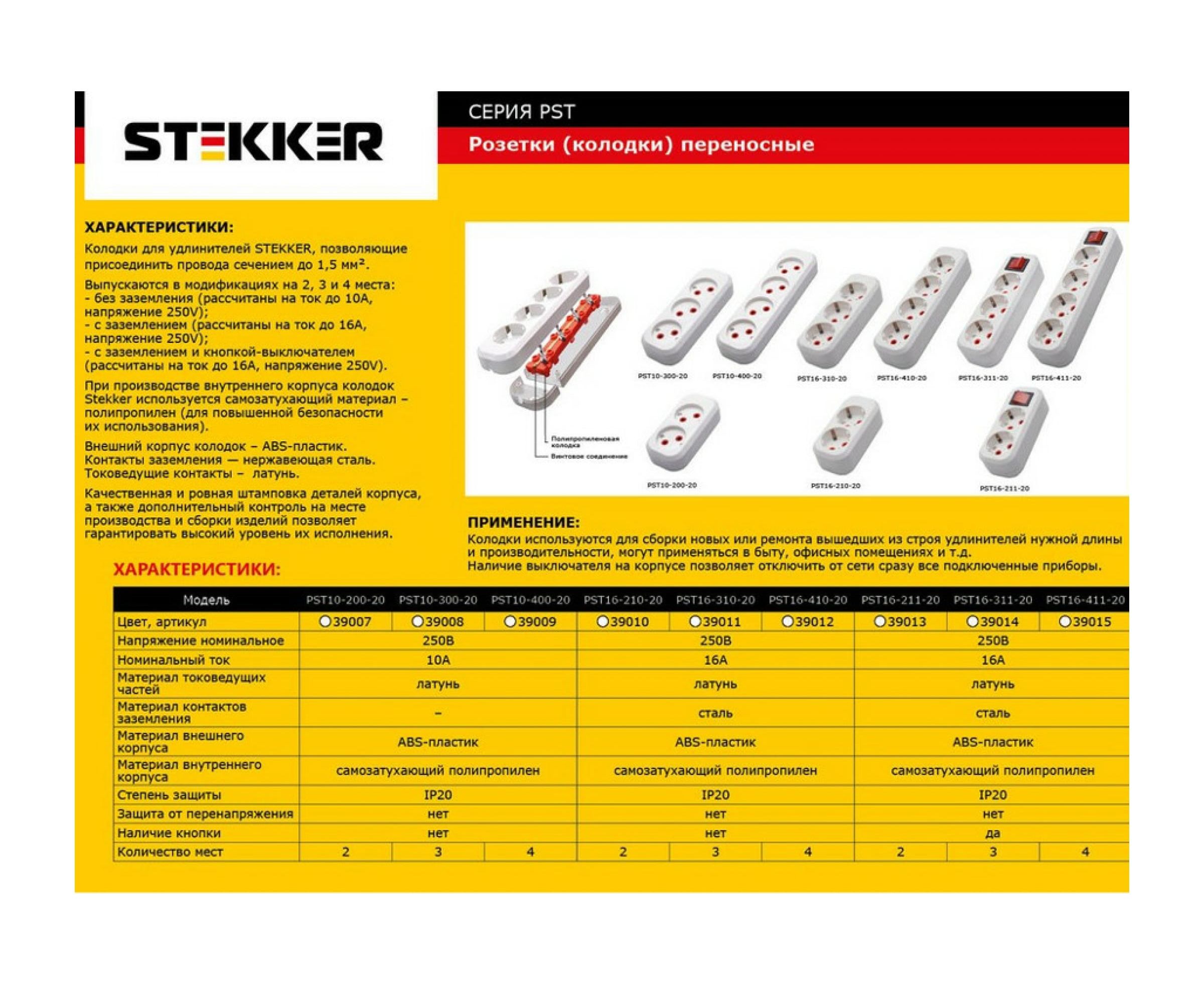 Разборная переносная розетка STEKKER 3 гнезда без заземления 250В 10A IP20 белая, PST10-300-20 39008