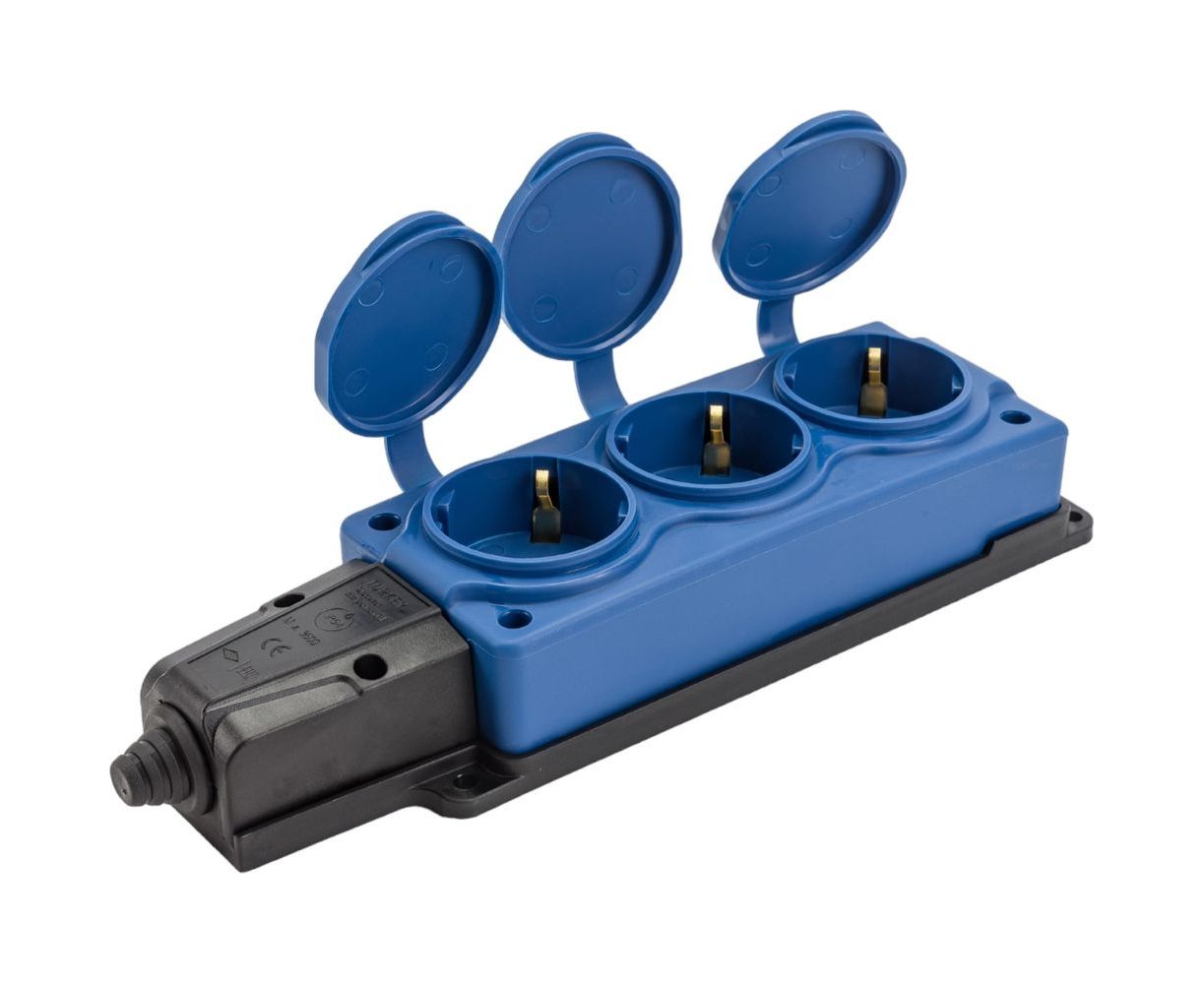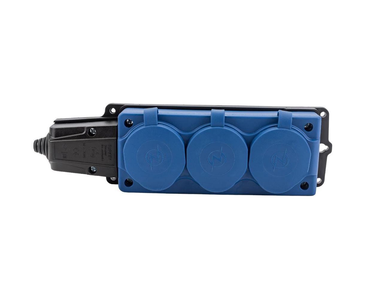 Штепсельная колодка NE-AD 3-гнезда, с заземлением, с крышками, 16А, IP54, синий/черный (каучук) (12/120) 4143