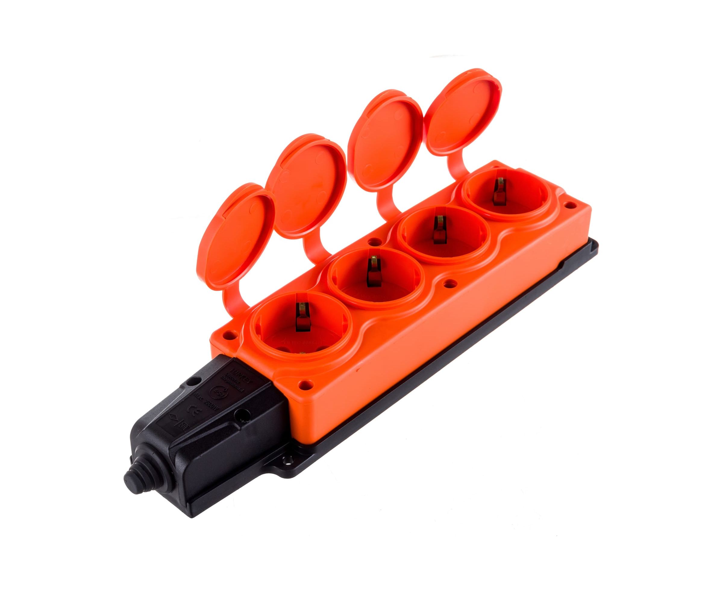 Штепсельная колодка NE-AD 4-гнезда с крышкой, с заземлением, 16А, IP54 каучук, Оранжевый 4114 служит для присоединения к сети электропитания различных бытовых электроприборов мощностью до 3,5 кВт. Одновременное подключение до четырёх единиц силового оборудования. Изделие предназначено для эксплуатации в суровых условиях - на открытом воздухе или во влажных или запыленных помещениях. Применяется на строительных площадках, в производственных цехах, в быту. Состав: эластомер, полиамид, электротехнический сплав.