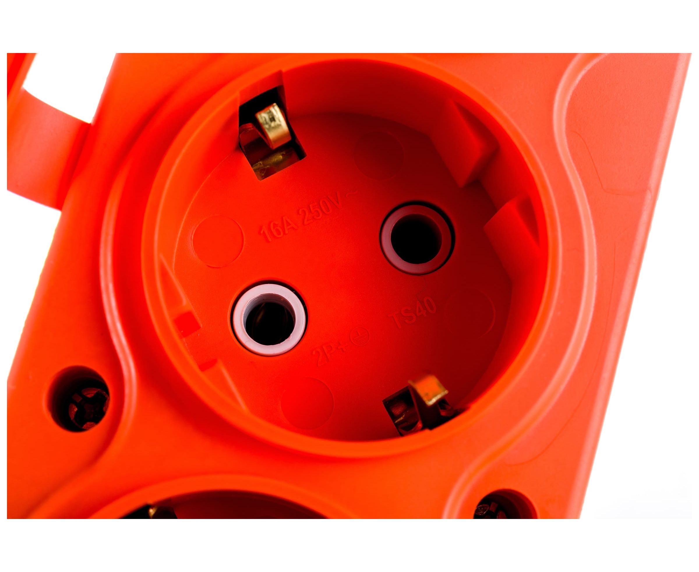 Штепсельная колодка NE-AD 4-гнезда с крышкой, с заземлением, 16А, IP54 каучук, Оранжевый 4114