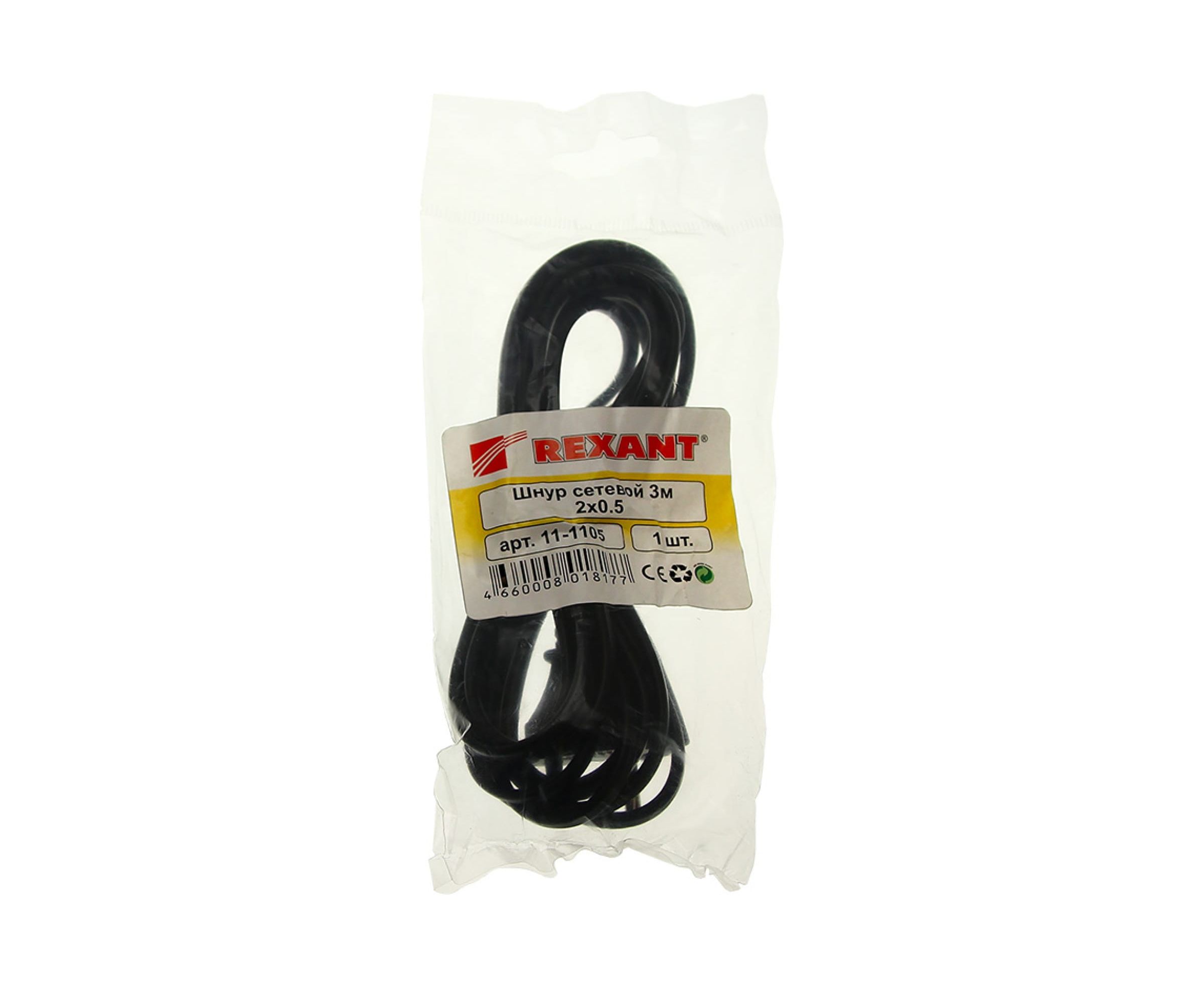 Сетевой шнур REXANT вилка - евроразъем С7, кабель 2x0,5 кв.мм, длина 3 метра 11-1105