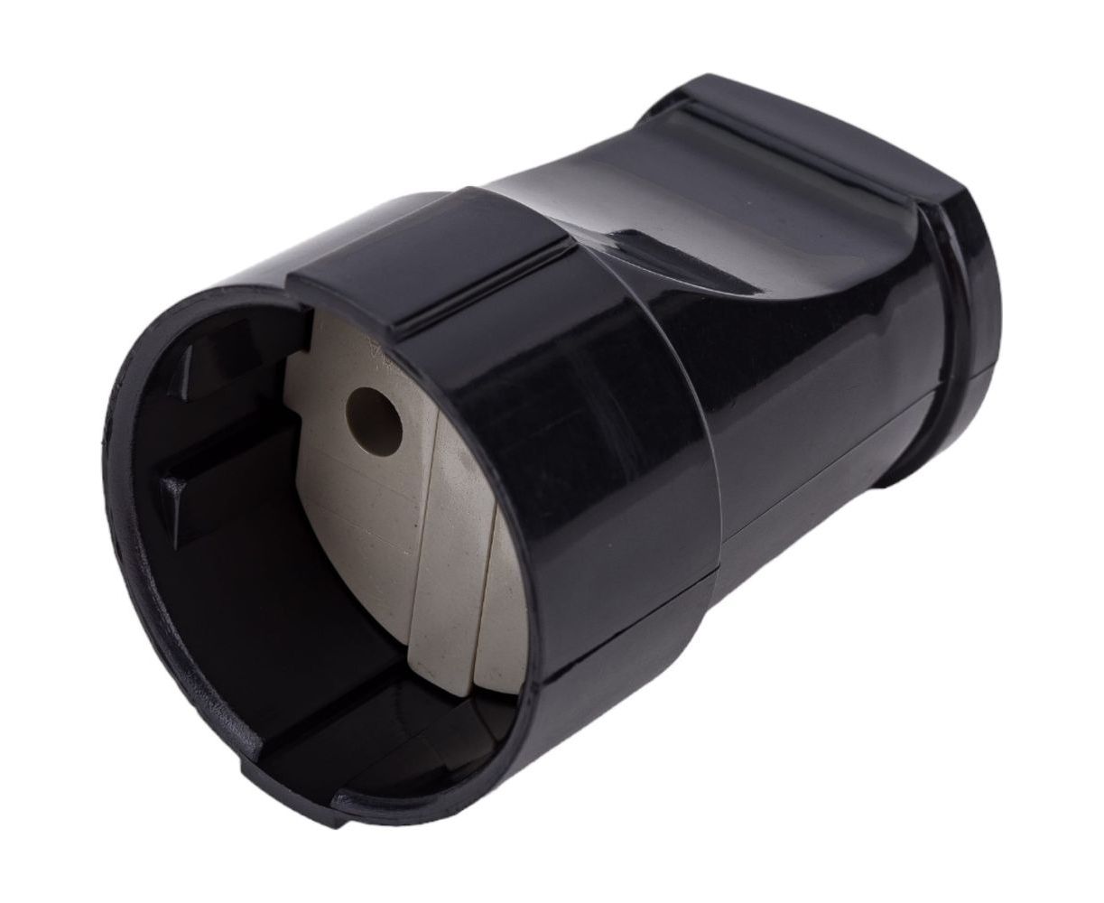 Кабельная разборная прямая розетка АБК-СИЛА без заземляющего контакта 10А 220В черная 2902002