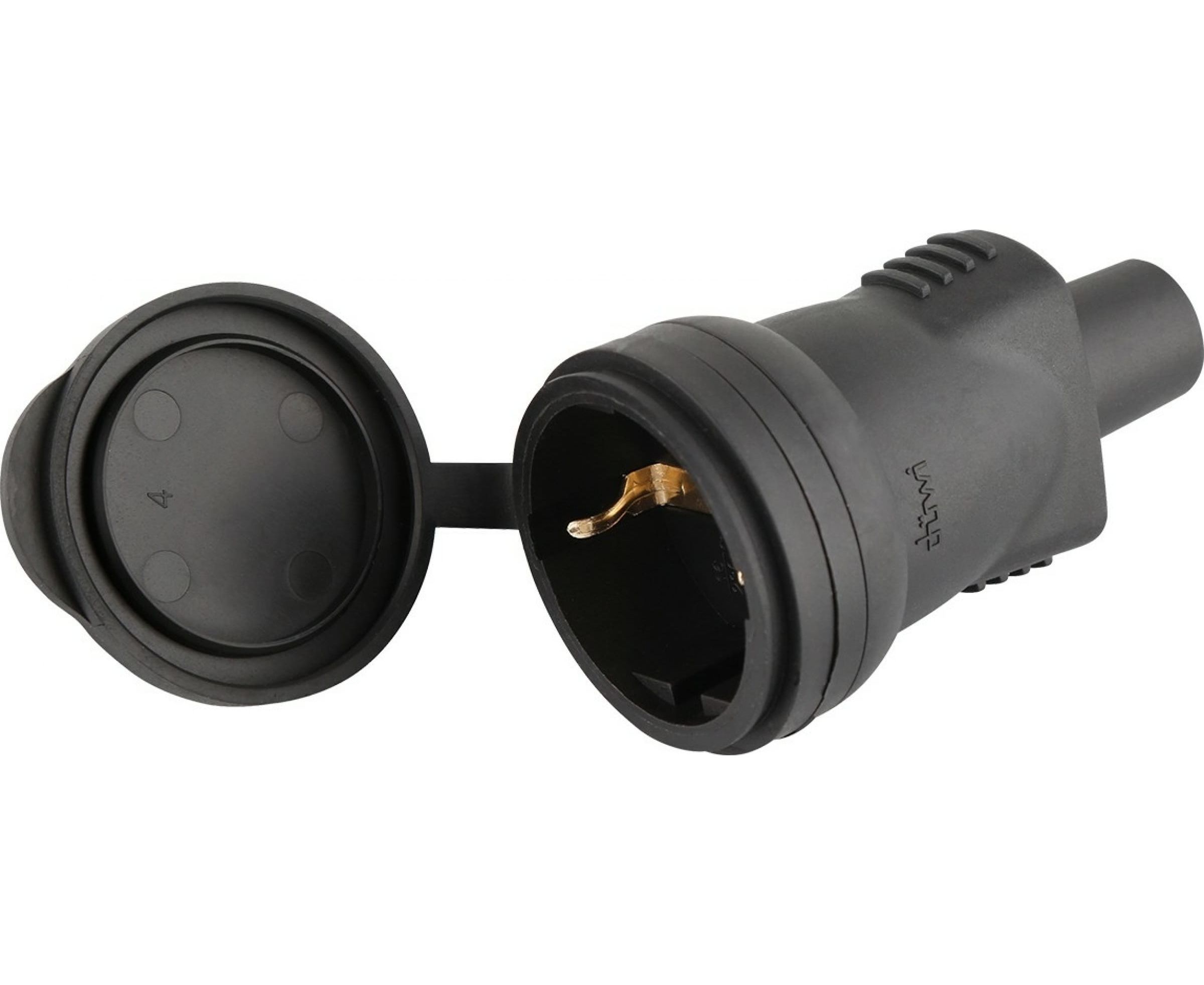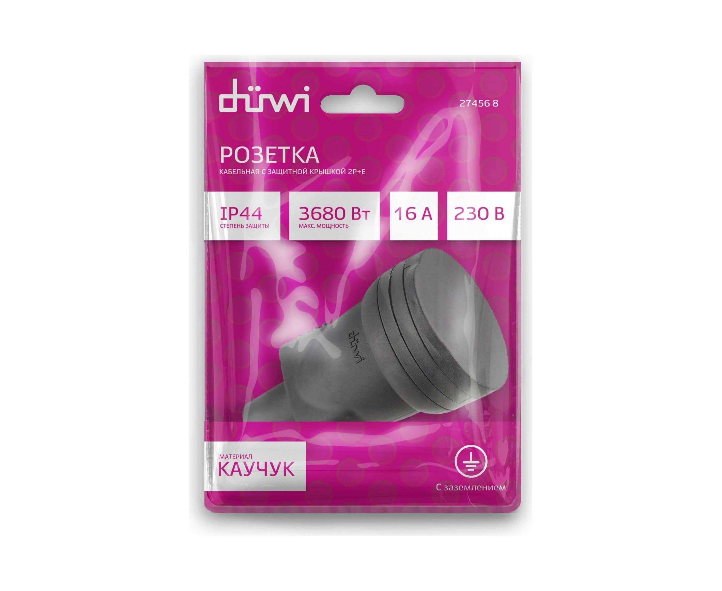 Кабельная розетка duwi c заземлением 16A с крышкой IP44 каучук черная 27456 8