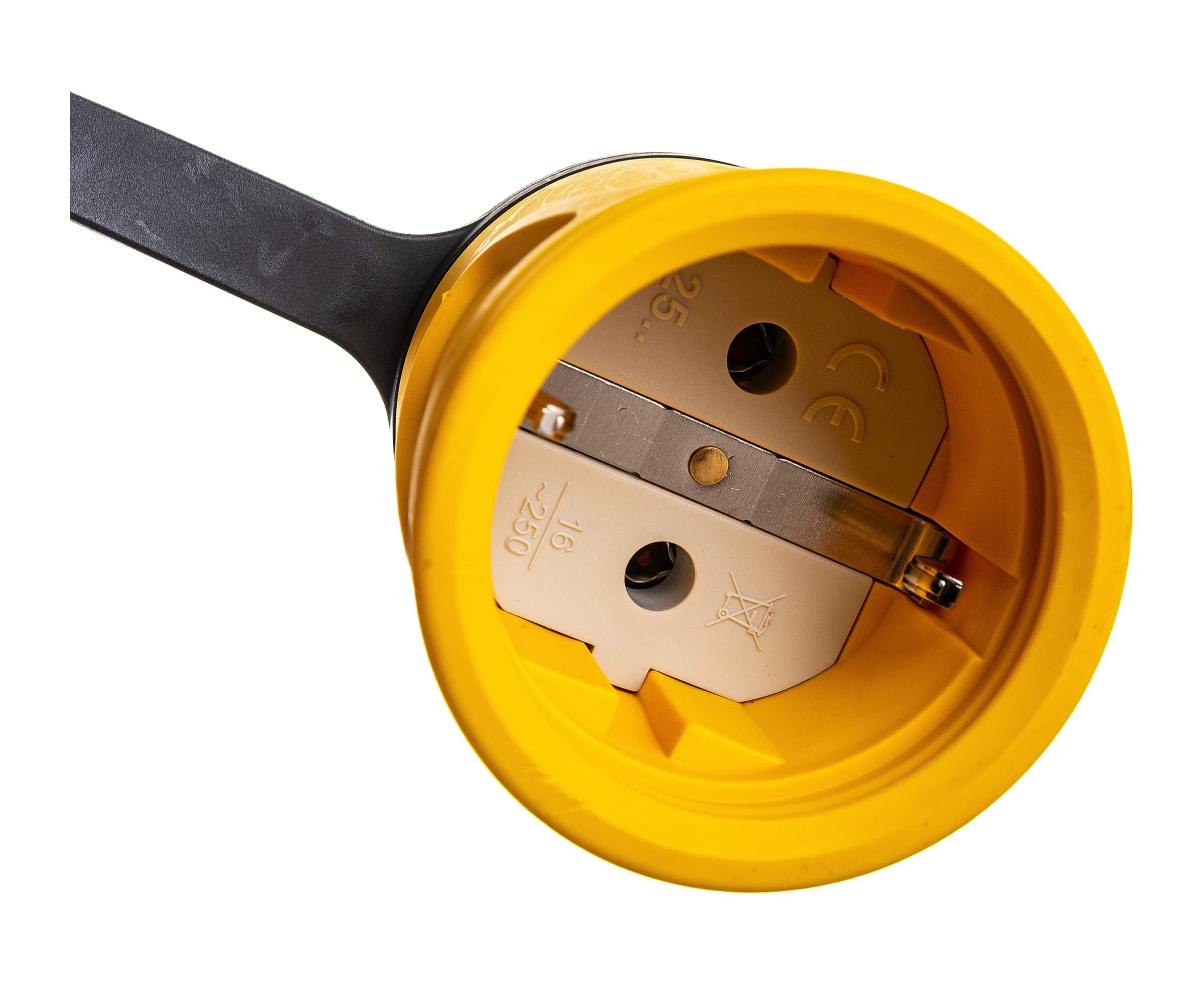 Кабельная розетка PCE 16A 220V 2P+E IP54 с крышкой, корпус желтый, крышка и маркер черный 2511-es