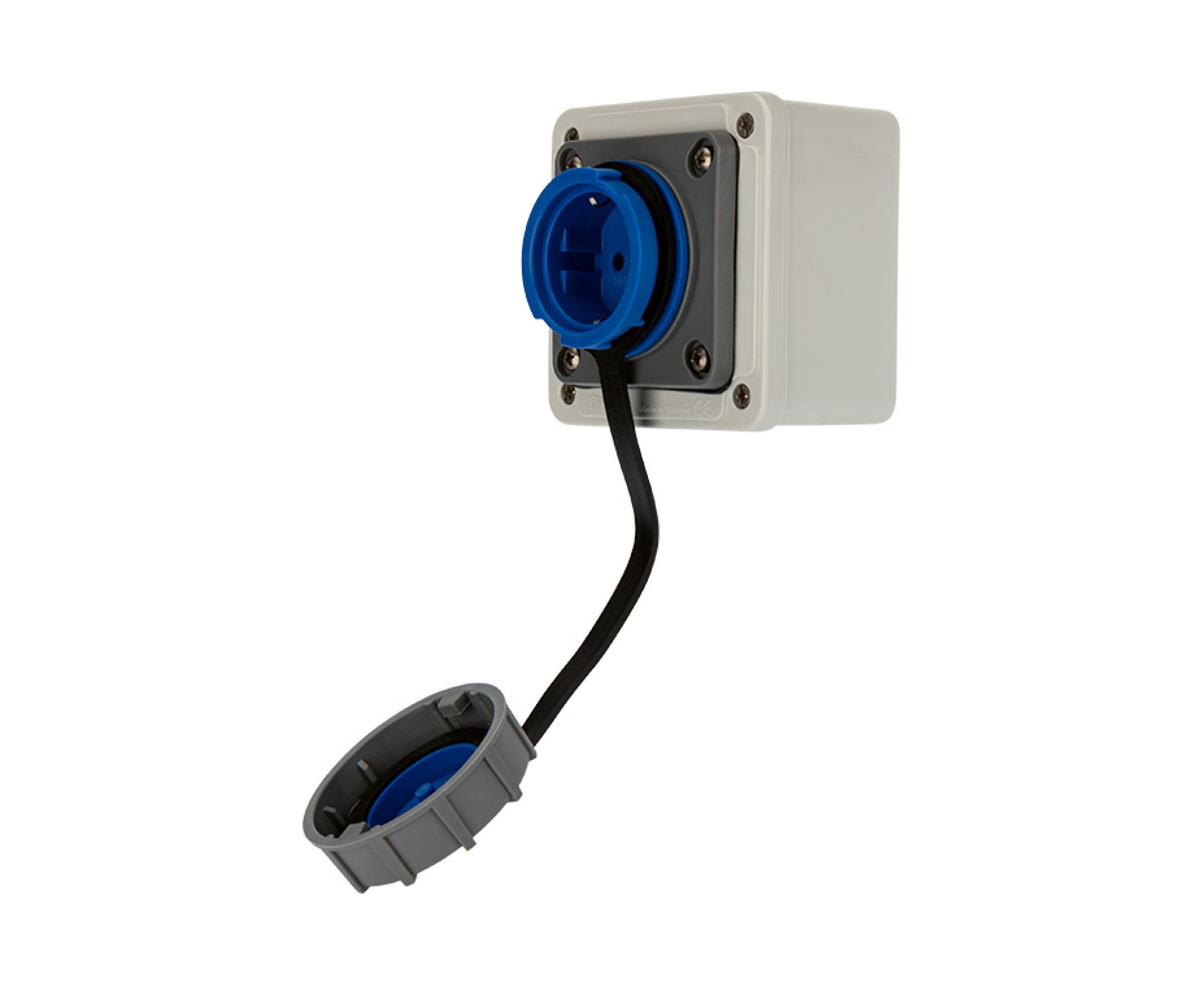 Настенная влагозащищенная розетка REXANT с крышкой 16 А, 2Р+РЕ, IP68 111-125