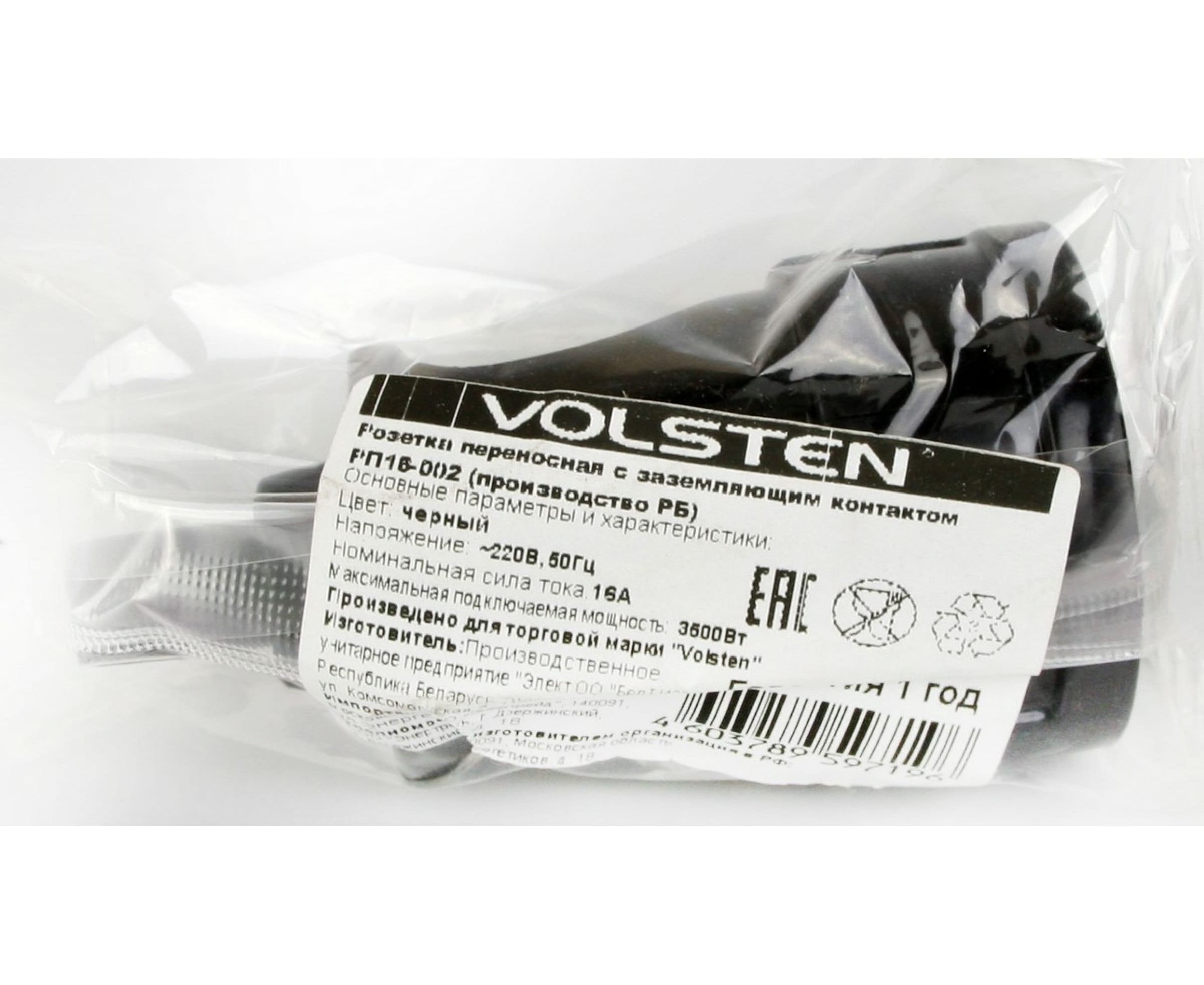 Разборная черная розетка Volsten Sb1-MZ11 16А 1 гнездо с заземлением модель РА16-002 14447