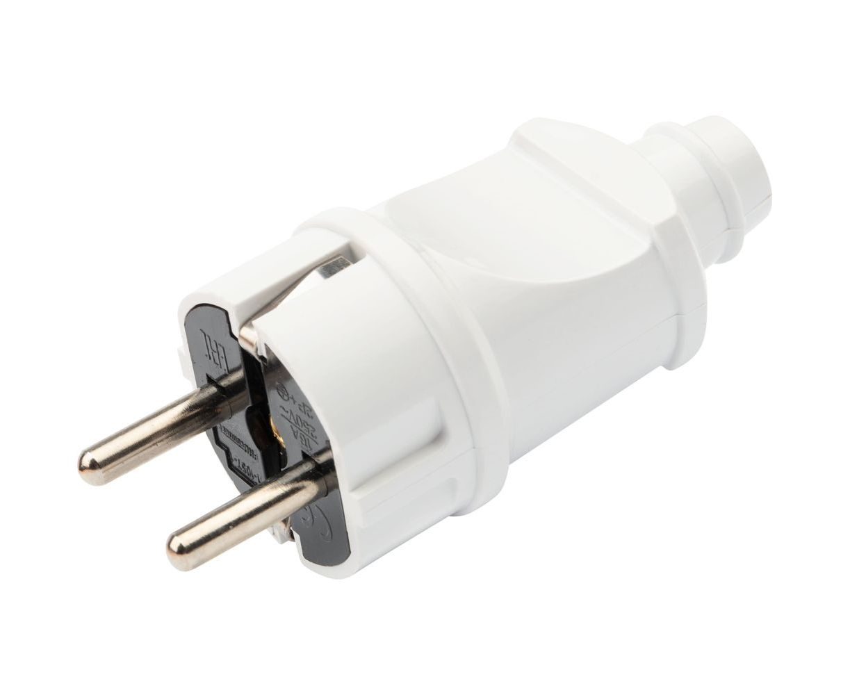Прямая усиленная вилка REXANT Евро с заземлением 16А белая 11-8948
