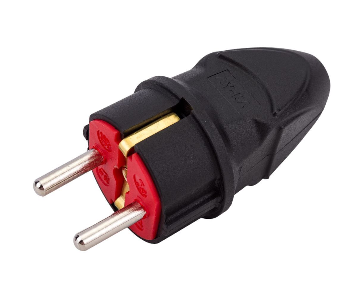Прямая вилка AY-KA 16А 250В с заземлением, черный 7913500