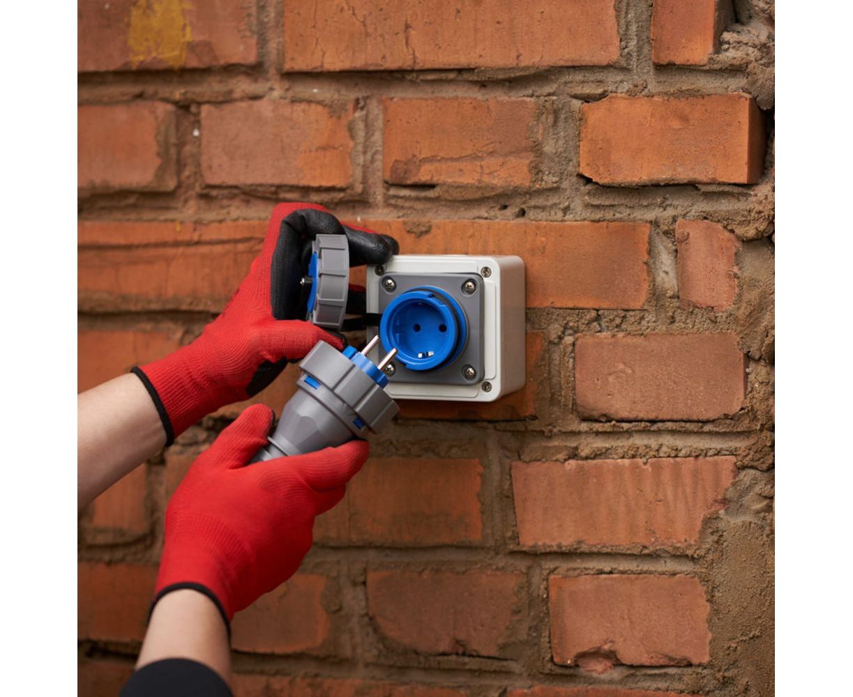 Прямая влагозащищенная вилка 2P+РE REXANT, 16 А, IP68 111-013